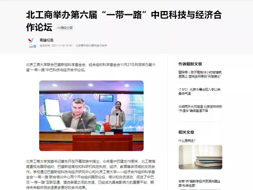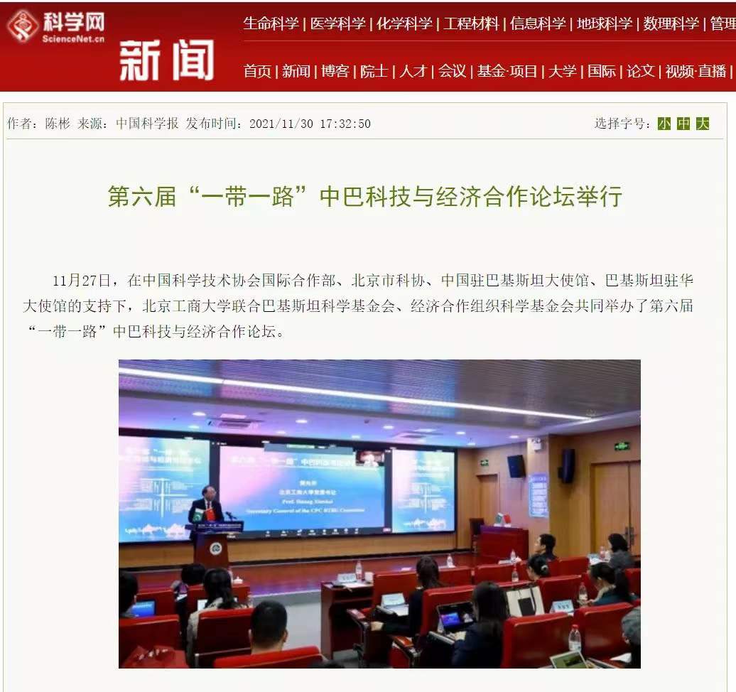 【北京青年報北青網】北工商舉辦第六屆“一帶一路”中巴科技與經濟合作論壇