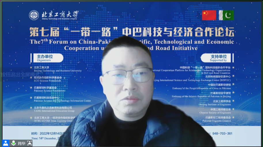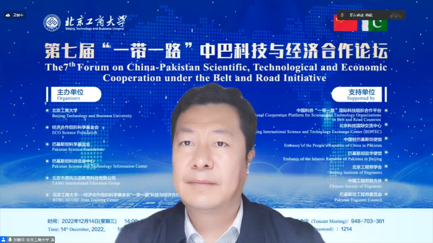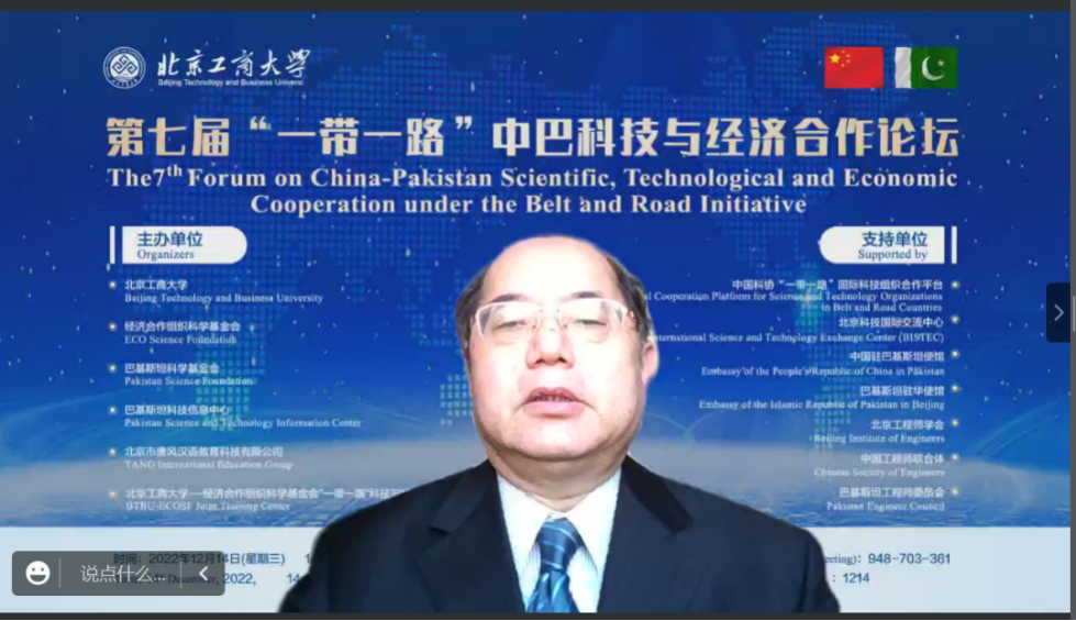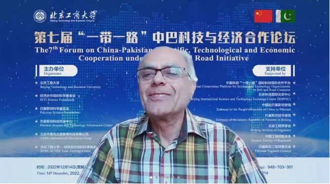 王慶林在致辭中表示,秉持以科學繁榮發展造福各國人民的理念,中國科協高度重視與世界各國的科技合作和人文交流,致力于增進科技界的開放、信任、合作,推動構建全球科技共同體。2016年中國科協啟動實施了“一帶一路”國際科技組織合作平臺建設,吸引了200多個國際組織和150多個國家的1000多個國別組織和機構參與,成為了全球科技界開展科技人文交流與合作的重要支撐平臺。北京工商大學巴基斯坦科技與經濟研究中心是第一批獲得“一帶一路”國際科技組織合作平臺建設項目資助的國別研究中心。中巴兩國是親如兄弟的友好鄰邦。在11月巴基斯坦總理夏巴茲閣下訪華期間,習近平主席強調,近年來兩國在世界變局亂局中相互支持、砥礪前行,彰顯中巴“鐵桿”情誼。中國科協也將以實際行動落實兩國領導人的會晤精神,在工作中持續推動構建中巴命運共同體。