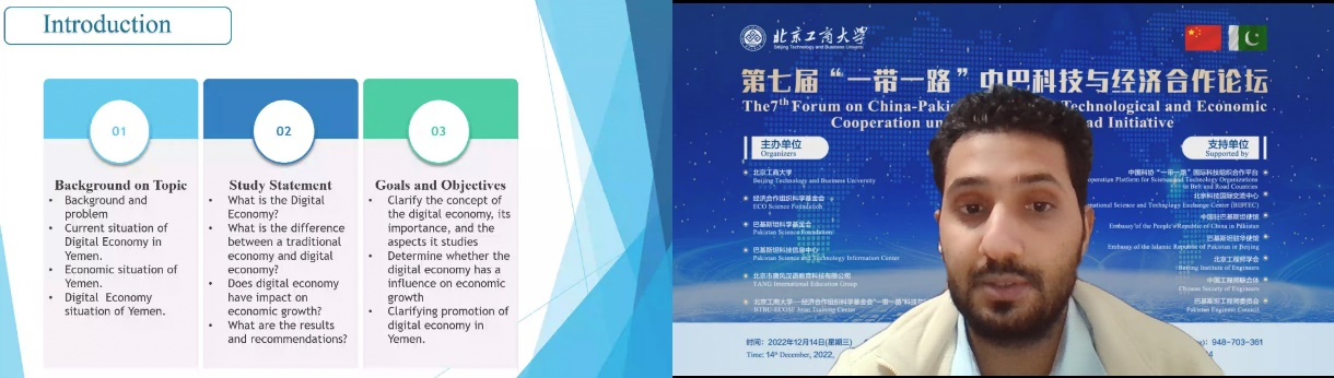 12月14日,在中國科學技術協會國際合作部、北京市科學技術協會、中國駐巴基斯坦大使館、巴基斯坦駐華大使館等單位的大力支持下,我校聯合經濟合作組織科學基金會、巴基斯坦科技與經濟及研究中心、唐風國際教育集團、北京環球英才交流促進會等單位共同舉辦了第七屆“一帶一路”中巴科技與經濟合作論壇。校黨委常委、副校長劉敏華,中國科協國際合作部一級巡視員王慶林,北京市科協黨組成員、副主席、一級巡視員田文,聯合國教科文組織駐華代表處主任夏澤翰,巴基斯坦經濟合作組織科學基金會主席薩義德 ? 科邁爾 ? 塔耶比,巴基斯坦科技信息中心主任阿卡姆·謝赫,巴基斯坦科技部國際合作司副司長汗 ? 穆罕穆德 ? 瓦澤等出席了會議。會議由國際經管學院黨委書記郭毅,我校名譽教授曼佐爾·侯賽因·索洛,巴基斯科技與經濟研究中心執行主任邸玉娜,數字經濟系副主任韓璐共同主持。