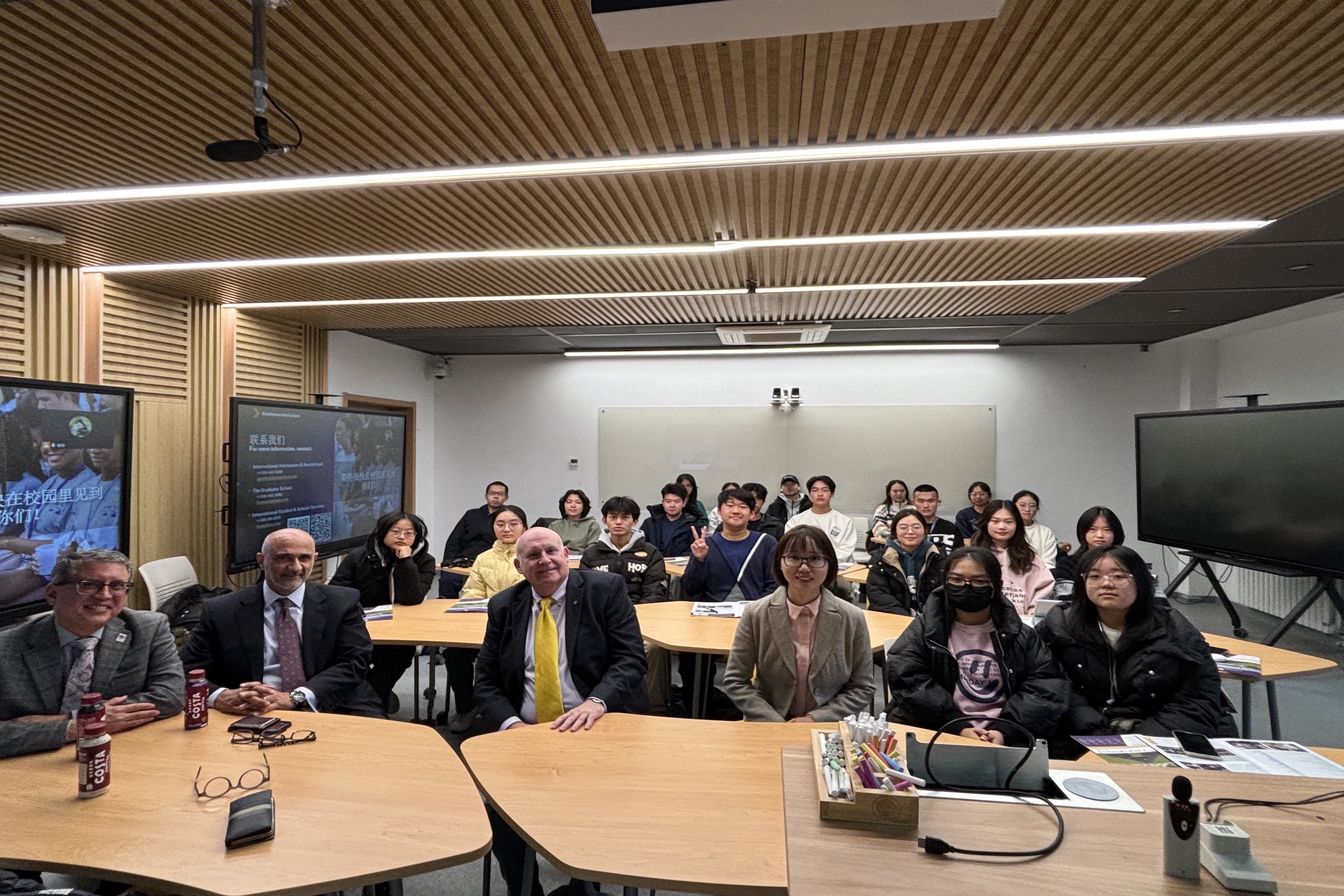 會談結束后,薩奈·法丁副校長一行為我校學生舉行了項目宣講會,詳細介紹了美國紐約州立奧爾巴尼大學的學校概況及雙方擬開展的相關學生交流項目的情況,回答學生關心的問題,并與學生們進行了深入的交流。