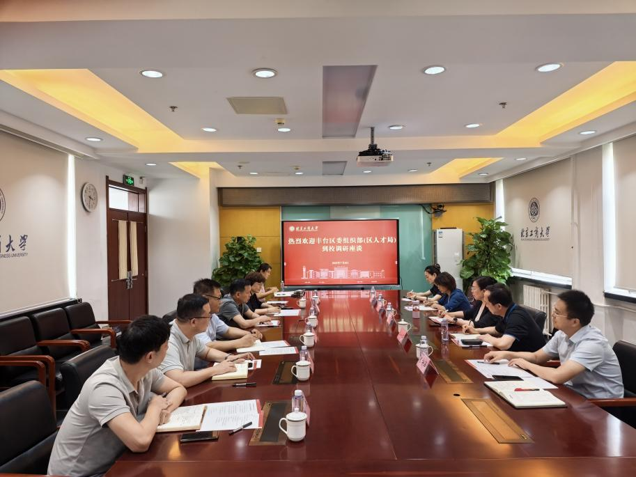 7月8日,北京市豐臺區(qū)委常委、組織部部長牟曉春一行到我校阜成路校區(qū)調(diào)研交流,聚焦深化校地合作、共育人才、推動產(chǎn)學研深度融合。學校黨委常委、副校長寇紅江陪同調(diào)研并主持座談。