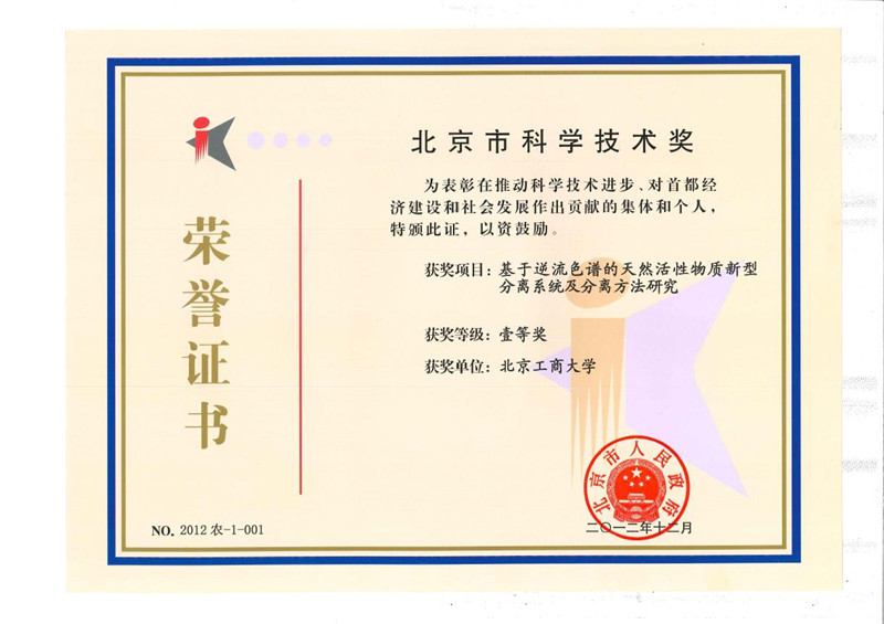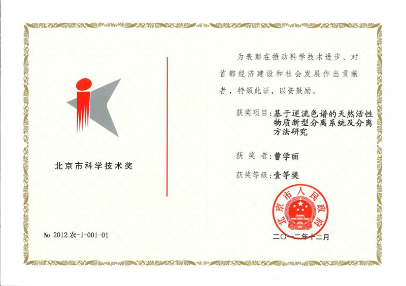 近日,北京市委、市政府隆重召開科學技術獎勵大會,表彰獲得2012年度北京市科學技術獎的科技創新成果,市委、市政府主要領導出席大會。我校曹學麗教授主持完成的《基于逆流色譜的天然活性物質新型分離系統及分離方法研究》研究項目榮獲2012年度北京市科學技術獎一等獎。