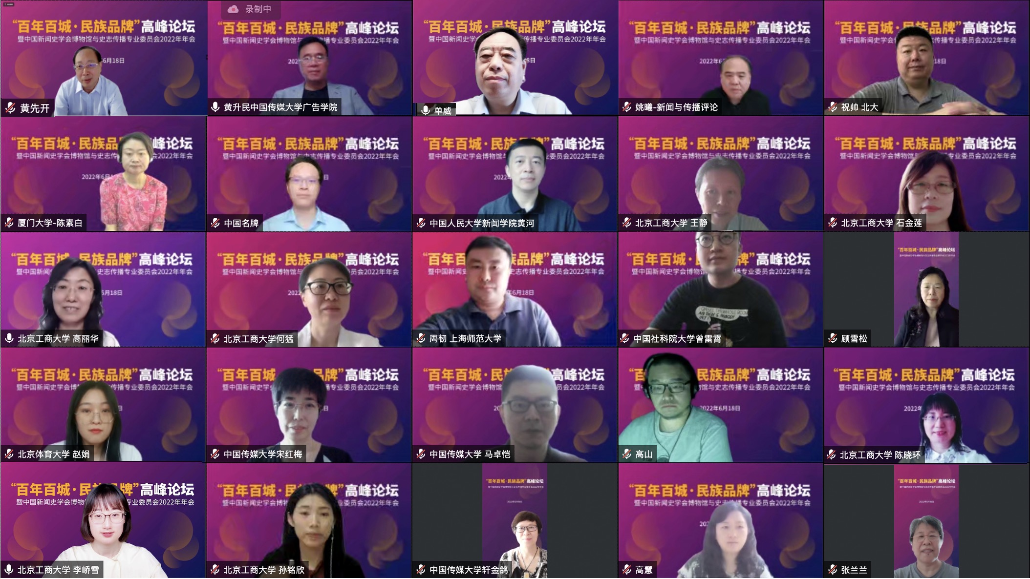 6月18日,“百年百城·民族品牌”高峰論壇暨中國(guó)新聞史學(xué)會(huì)博物館與史志傳播專(zhuān)業(yè)委員會(huì)2022年年會(huì)線(xiàn)上召開(kāi)。本次高峰論壇由北京工商大學(xué)聯(lián)合中國(guó)新聞史學(xué)會(huì)博物館與史志傳播專(zhuān)業(yè)委員會(huì)共同主辦,國(guó)家廣告研究院、中國(guó)傳媒大學(xué)廣告學(xué)院、中國(guó)廣告博物館、北京工商大學(xué)科學(xué)研究院承辦。
