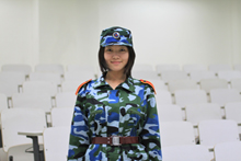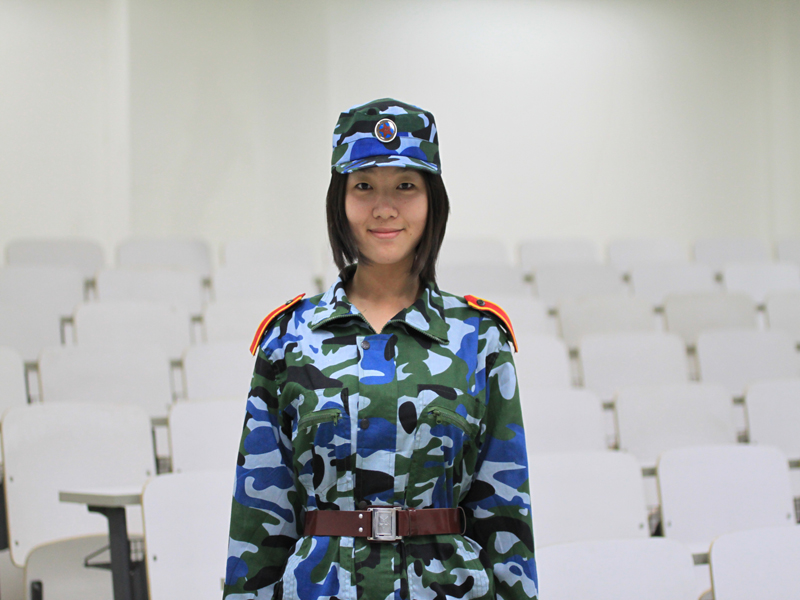 初見秦曲,她騎著自行車,一身迷彩,短發(fā)齊耳,臉上帶著微笑,文靜卻略顯柔弱。“我身體并不好,但是我練過(guò)舞蹈,也接觸過(guò)很多軍人,這些經(jīng)歷培養(yǎng)了我的精神,面對(duì)新的挑戰(zhàn),我能堅(jiān)持下來(lái)。”這個(gè)看似文弱的小女孩兒,卻有著堅(jiān)毅的性格。“初中軍訓(xùn)時(shí)候我是學(xué)校的護(hù)旗手,當(dāng)時(shí)教官對(duì)我進(jìn)行了特別的訓(xùn)練,所以我可能很快適應(yīng)這次的軍訓(xùn)生活。”秦曲微笑著說(shuō)。