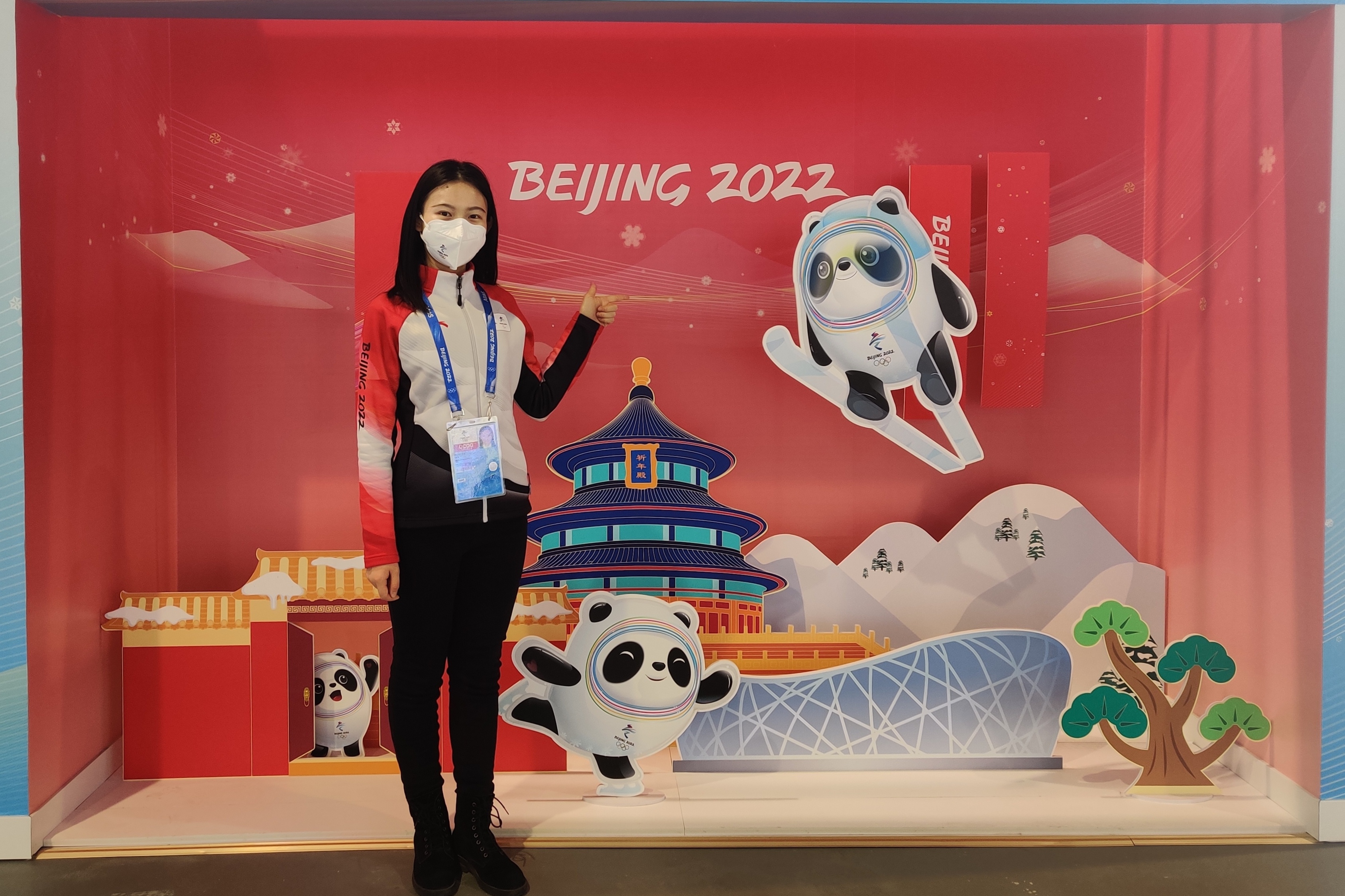 在認真完成教學任務的同時,董玥積極發(fā)揮專業(yè)優(yōu)勢服務社會。2021年9月至2022年4月,董玥有幸作為短期幫助人員服務于北京冬奧會和冬殘奧會主媒體中心運行團隊,擔任口譯員。