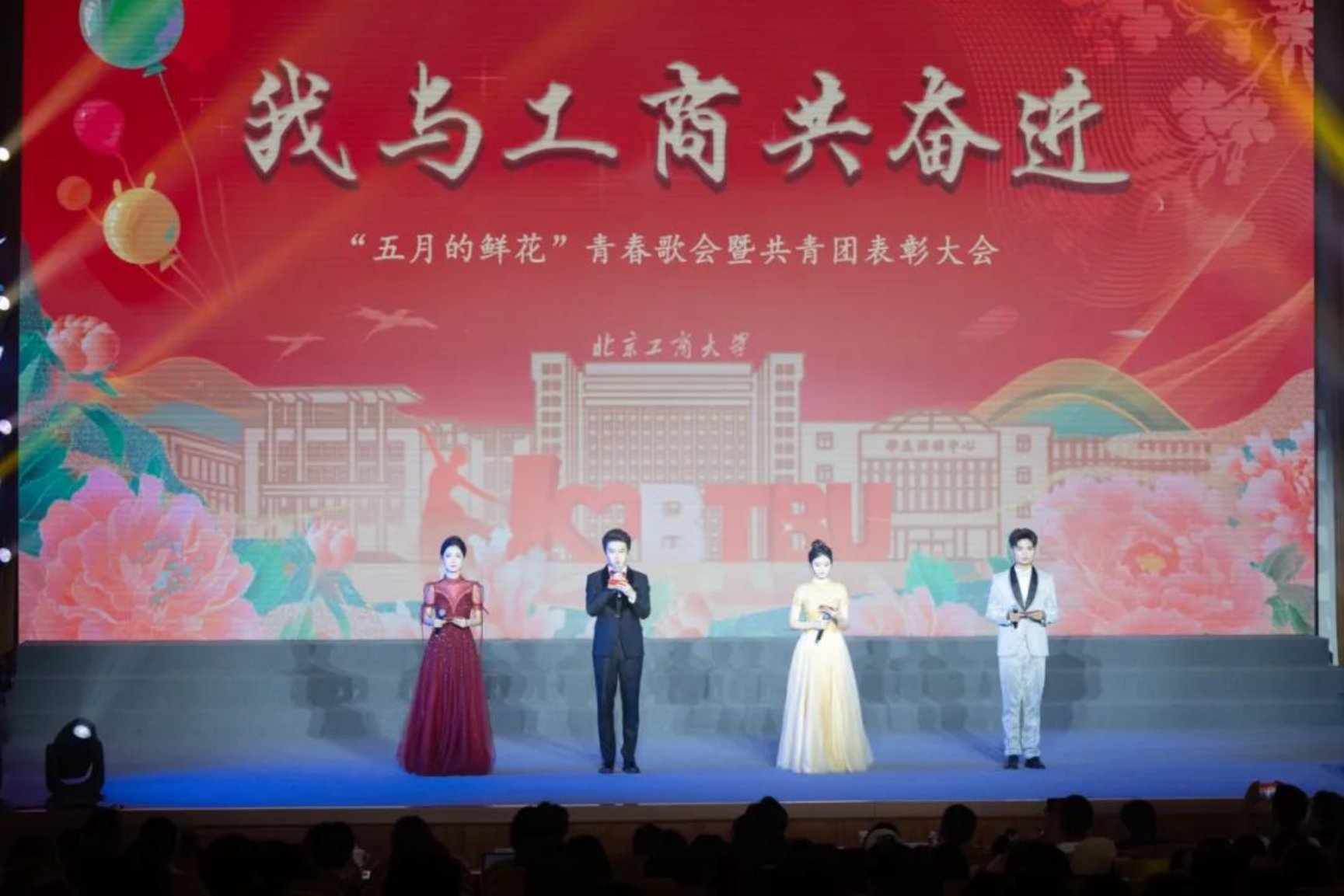 商學院昂揚勵志《在燦爛陽光下》《一路生花》,譜寫出在黨的光輝照耀下,奮斗者們堅持不懈、逐夢前行,終獲繁花簇擁,馥郁芬芳的美好畫卷。70年代、80年代、90年代、00年代四屆校友用飽含深情的誦讀,表達了對母校的感恩和衷心祝愿,更表達出對學弟學妹們勇敢追夢、綻放青春的美好祝福。演出傳遞出薪火相傳的奮進力量,描繪了北工商學子與母校共奮進、與祖國共成長的動人場景。