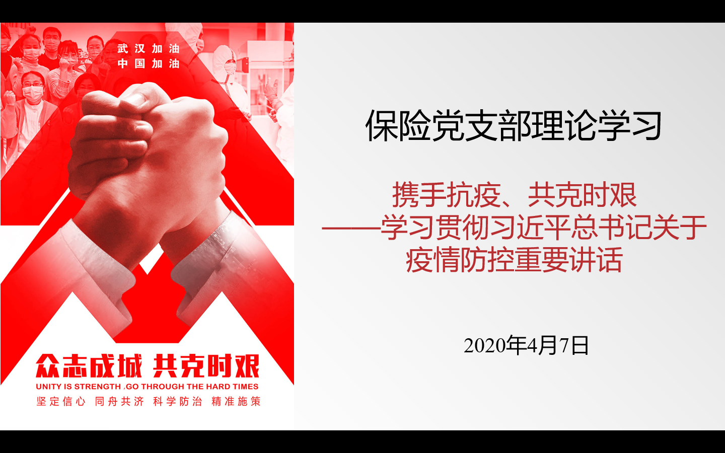 首先,吉彩紅老師帶領支部黨員學習了習近平總書記關于疫情防控的重要講話精神,重點學習了以下內容:1月25日(大年初一),習近平總書記主持中共中央政治局常務委員會會議,對各級黨組織和廣大黨員、干部要在打贏疫情防控阻擊戰中發揮積極作用作出重要指示;3月10日,習近平總書記赴湖北省武漢市考察新冠肺炎疫情防控工作并發表重要講話;3月26日,習近平總書記在北京出席二十國集團領導人應對新冠肺炎特別峰會,發表題為《攜手抗疫共克時艱》的重要講話; 3月27日,習近平總書記主持召開中共中央政治局會議,分析國內外新冠肺炎疫情防控和經濟運行形勢,研究部署進一步統籌推進疫情防控和經濟社會發展工作。