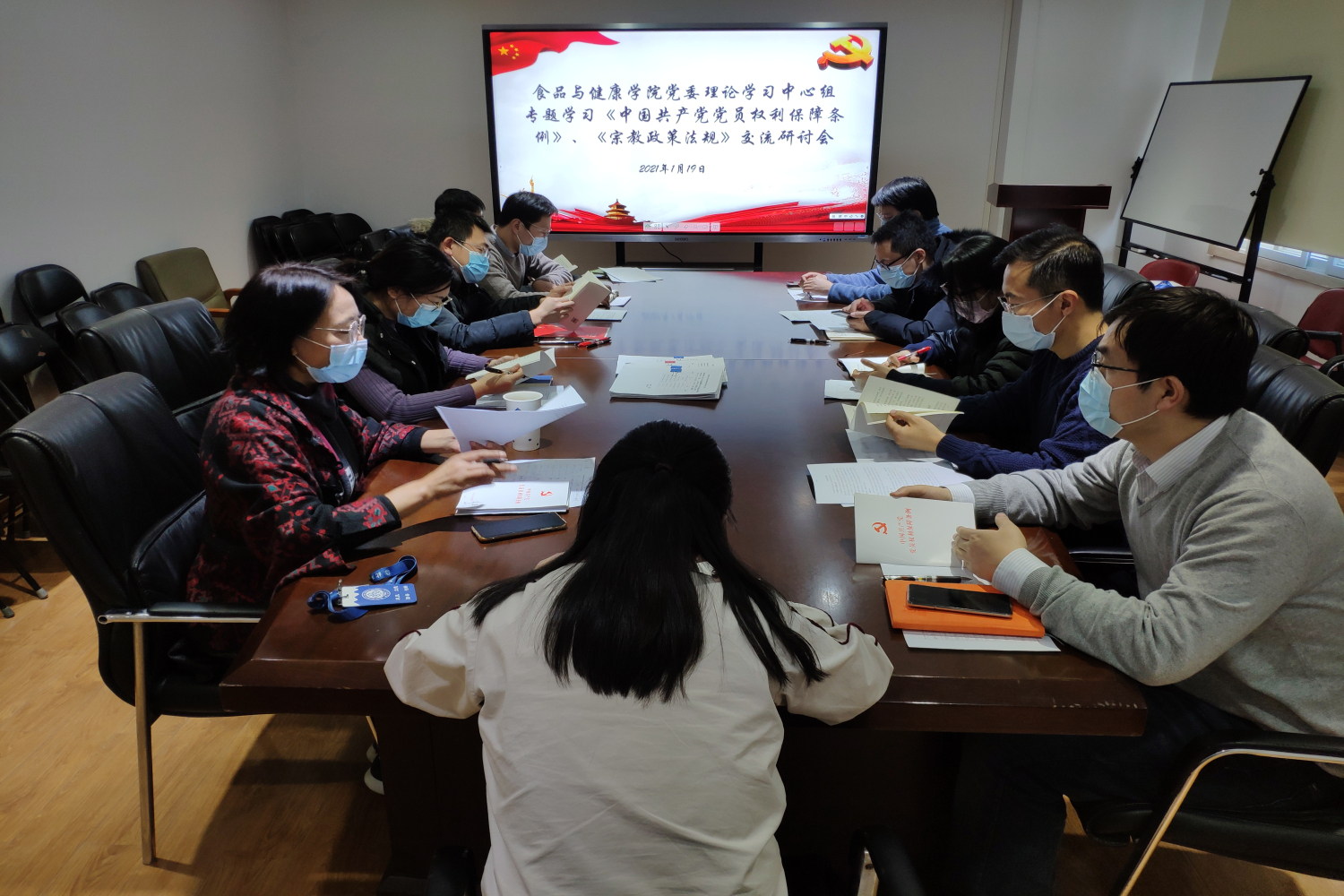1月19日下午,食品與健康學院黨委理論中心組(擴大)召開2021年第一次集體學習,就《中國共產黨黨員權利保障條例》(以下簡稱“《條例》”)、《宗教政策法規》專題進行交流研討。學院黨委理論中心組全體成員參加,系主任肖俊松、熊科列席,會議由學院黨委書記胡燕霞主持。