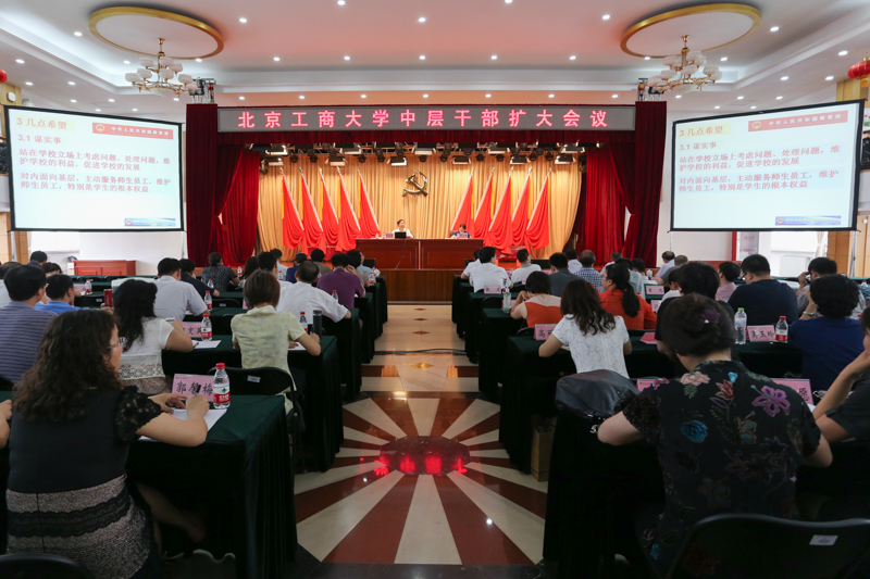 7月10日,學(xué)校在阜成路校區(qū)召開中層干部擴(kuò)大會(huì)議。校領(lǐng)導(dǎo)孫寶國(guó)、張德玉、謝志華、李朝鮮、張?jiān)?、鄭文紅、方德英、邱曉平出席會(huì)議。會(huì)議由黨委副書記董竹娟主持。全體中層干部和全體系主任參加了會(huì)議。