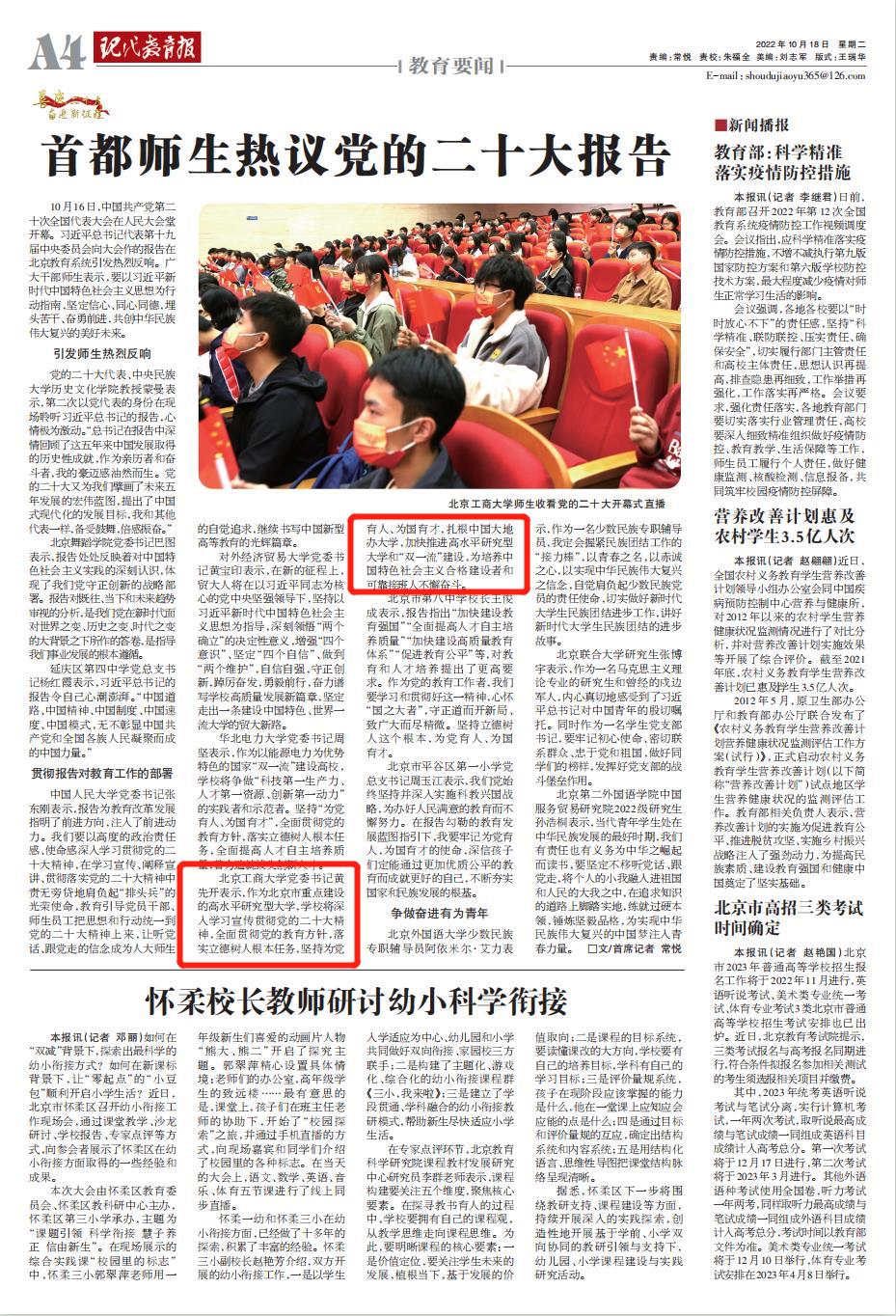近日,現代教育報報道了首都師生熱議黨的二十大報告,我校黨委書記黃先開包含其中,現轉載如下: