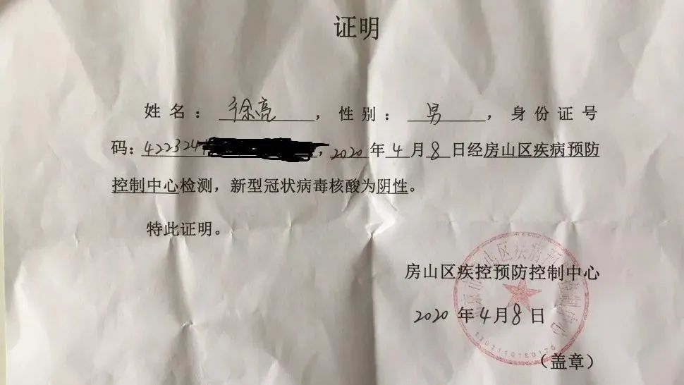 “歡迎回家”,多么熟悉的味道,工作人員早早在站臺等候,我們聽從指揮安排,由專人引導離漢返京旅客經由專用通道和出站口有序出站,來到房山區接站指定區域,隨后乘坐大巴經歷1個多小時來到房山區的一個酒店入住等待核酸檢測,工作人員加班加點檢測,11:30左右檢測結果出來為陰性,隨后拱辰街道工作人員不辭辛苦安排專車接我回到所住小區。經過體溫檢測、實名驗證和登記后,凌晨12:30終于回到了期盼已久的家。