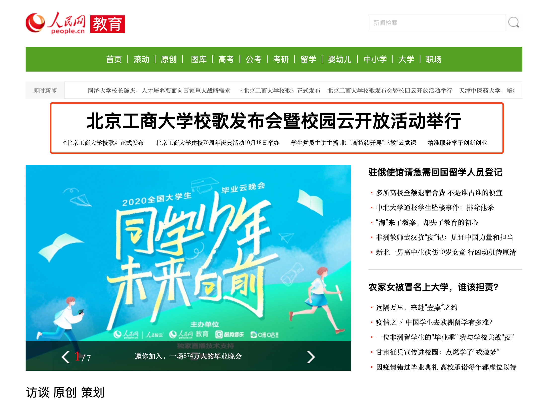 6月13日,人民網對校歌發布會暨校園云開放日活動進行了報道,該篇報道及其他4篇我校相關報道登上人民網教育頻道首頁置頂位置,現將全文轉載如下: