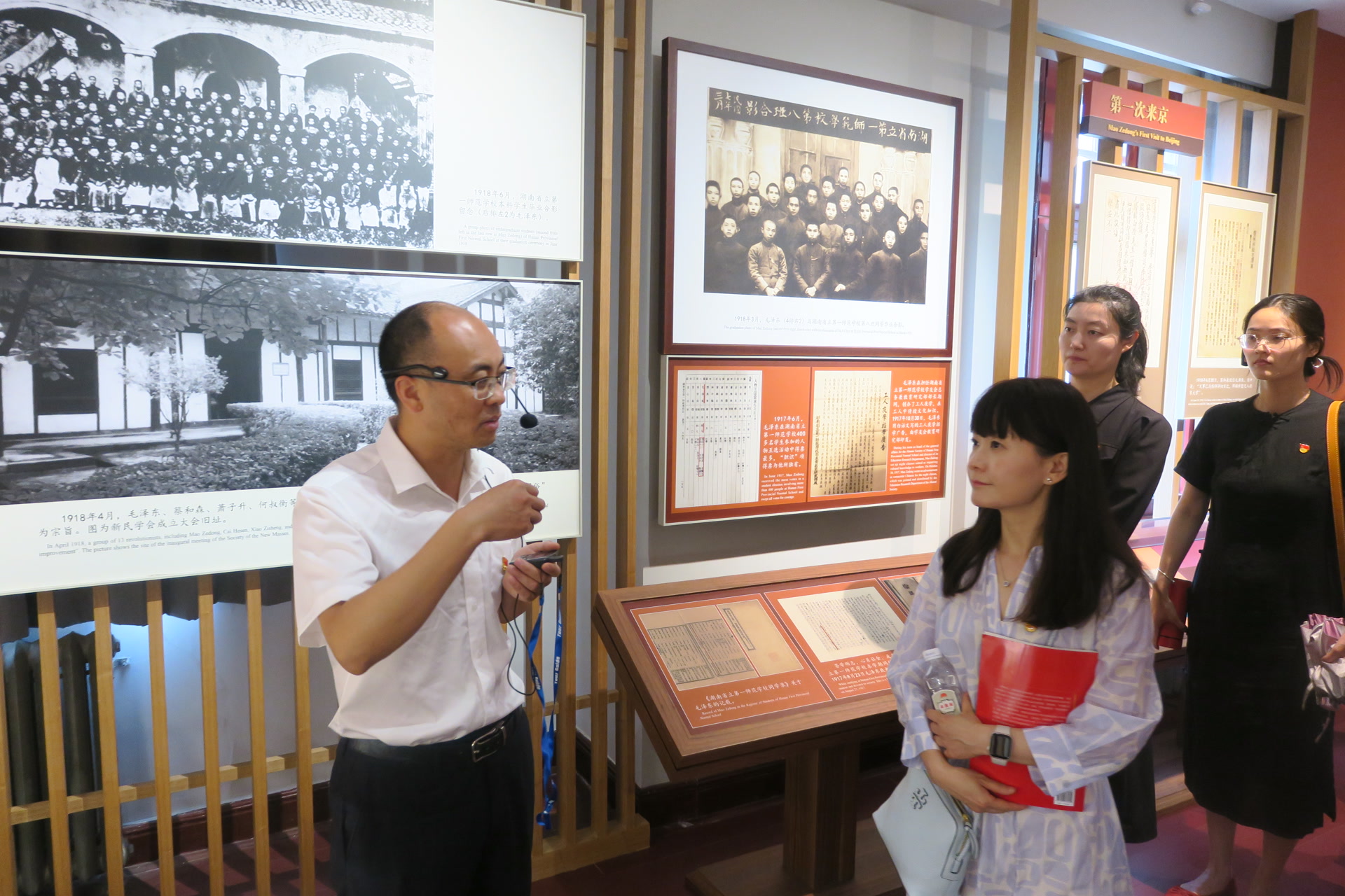 在北大紅樓,中國共產(chǎn)黨早期北京革命活動紀(jì)念館館長楊家毅作為研學(xué)導(dǎo)師,為師生們親自講解,分享青年毛澤東在北大紅樓、北大二院、楊昌濟(jì)故居、三眼井胡同、陶然亭慈悲庵、長辛店等紅色舊址開展革命活動的經(jīng)歷。師生一行坐在毛澤東、鄧中夏等先驅(qū)者們曾經(jīng)學(xué)習(xí)研討的座位上,仿佛穿越時空,開啟了一場穿越時空的對話。