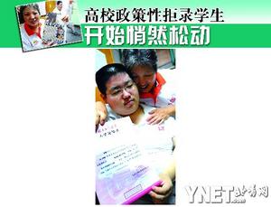 按照正在實施的《普通高等學校招生體檢工作指導意見》,高??删芙^錄取包括嚴重心臟病、慢性腎炎、高血壓病、慢性肝炎等六類疾病的考生。但是記者在采訪中發現,這種政策性拒錄學生已經開始悄然松動。