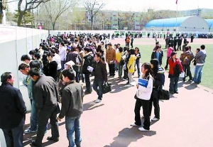 3月31日,北京工商大學(xué)開辦了一場(chǎng)以中小企業(yè)為主的就業(yè)大市場(chǎng)。該校今年有3500多名畢業(yè)生,其中70%是北京籍學(xué)生——