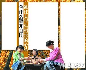今年,首批村官服務期滿。來自部分區縣人事部門的統計顯示,首批大學生“村官”將有10%進入鄉鎮政府的事業編制、10%續聘村官助理職務,其余80%選擇卸任另謀出路。