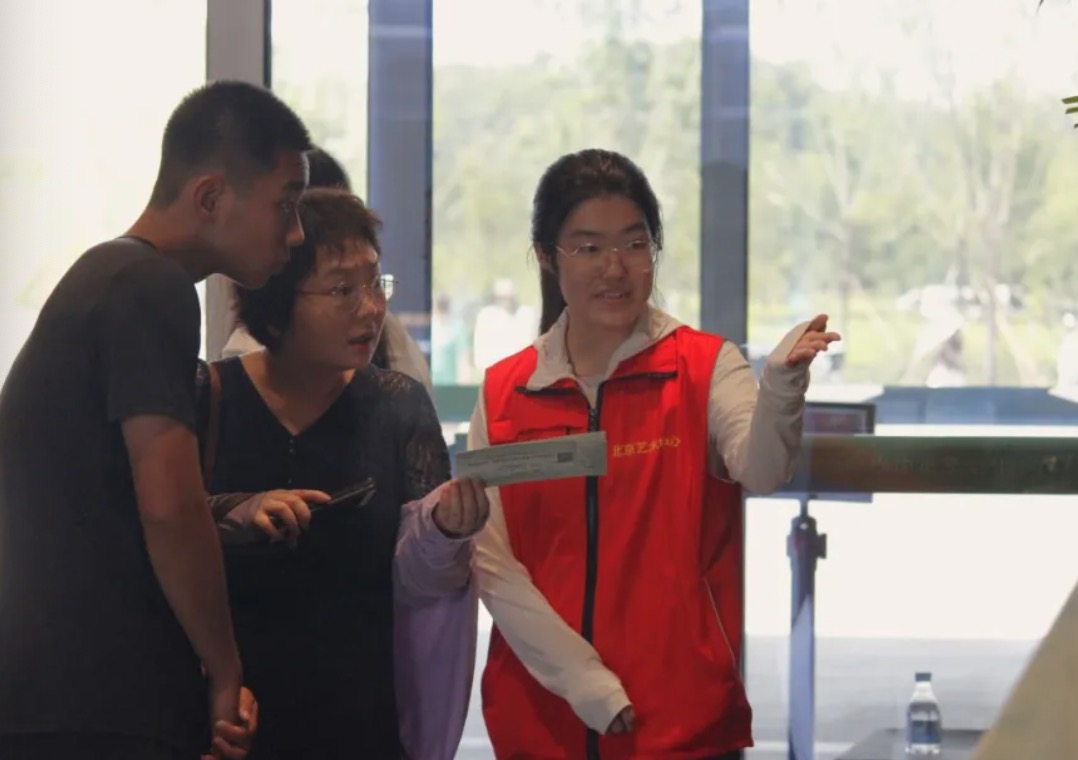 在北京藝術中心,志愿者們同樣展現出了他們的專業與熱情。6月10日,10名志愿者來到北京藝術中心,他們相互協作,積極開展觀眾指引、檢票、行李寄存等工作。
