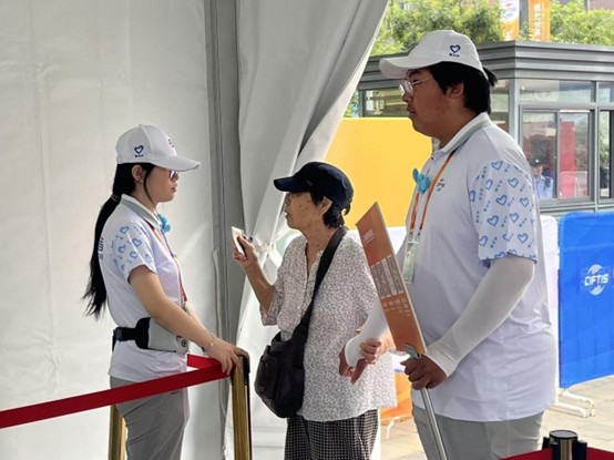 9月12日一位70歲并且視力有障礙的老奶奶想要去參觀服貿會,但是由于不會操作和身體原因,來自北京工業職業技術學院志愿者劉嘉燁,蒲京,劉婧怡三名志愿者進行幫忙,劉嘉燁同學幫她引導到閘機,由蒲京和劉婧怡同學進行現場賬號的注冊,在服務的時候,老奶奶說了一句令我們印象最深的話,無論如何我都要進去參觀看看這個繁華的景象。