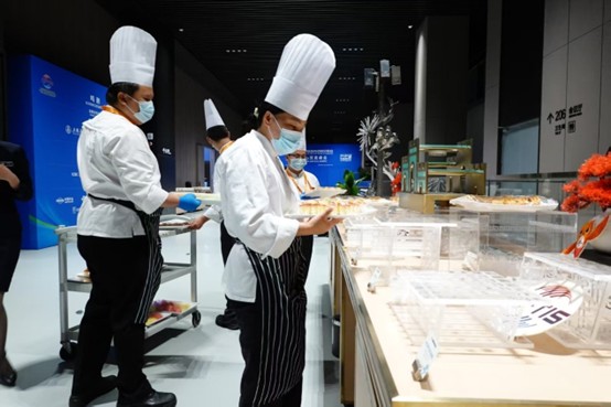全球服務貿易峰會茶歇由國家會議中心提供茶歇外賣至首鋼會展中心,為確保食品新鮮,國家會議中心自當天0點統一制作, 8:30客人品嘗到茶歇,9個小時完成茶歇從制作到客人享用。會場總計為700余名參會嘉賓提供茶歇服務。同時,北辰集團統籌安排,抽調旗下國家會議中心66名服務人員保障峰會,帶來物資4000余件保障峰會圓滿舉行。
