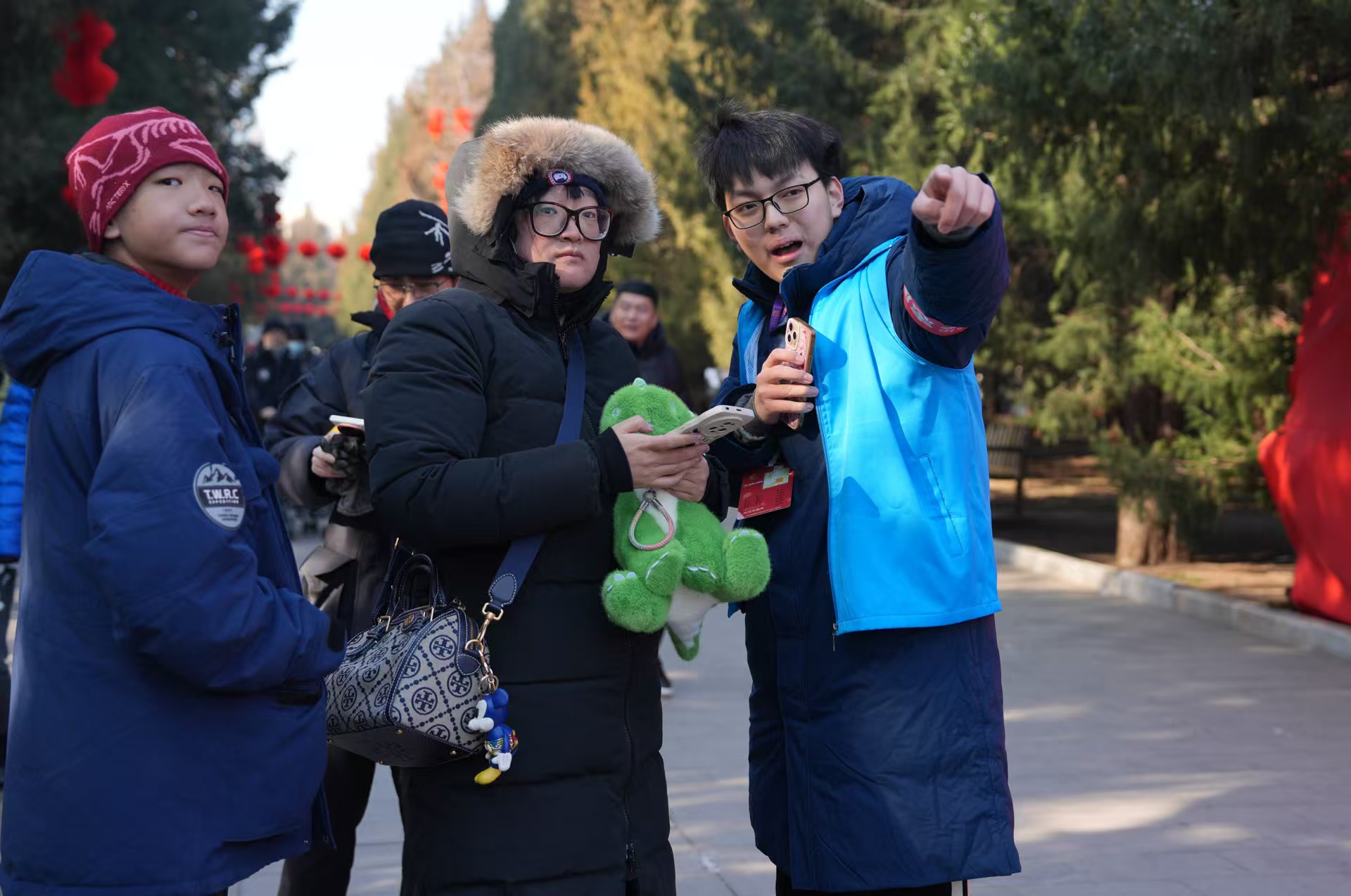 今年春節(jié)假期,包括賈雨涵在內(nèi)的一群青年“藍(lán)馬甲”,走上秩序維護(hù)、信息解答、活動推廣等崗位,用熱情守護(hù)喜慶年味兒。其中,東城團(tuán)區(qū)委動員組織北京工商大學(xué)、北京聯(lián)合大學(xué)、北京建筑大學(xué)等6所高校招募300名大學(xué)生志愿者,參與地壇公園和龍?zhí)豆珗@的春節(jié)文化廟會志愿服務(wù)保障活動,預(yù)計(jì)志愿服務(wù)時(shí)長超1.6萬小時(shí)。海淀新春科技廟會招募了來自中國傳媒大學(xué)、中國政法大學(xué)、北京城市學(xué)院等8所高校的100余名志愿者。