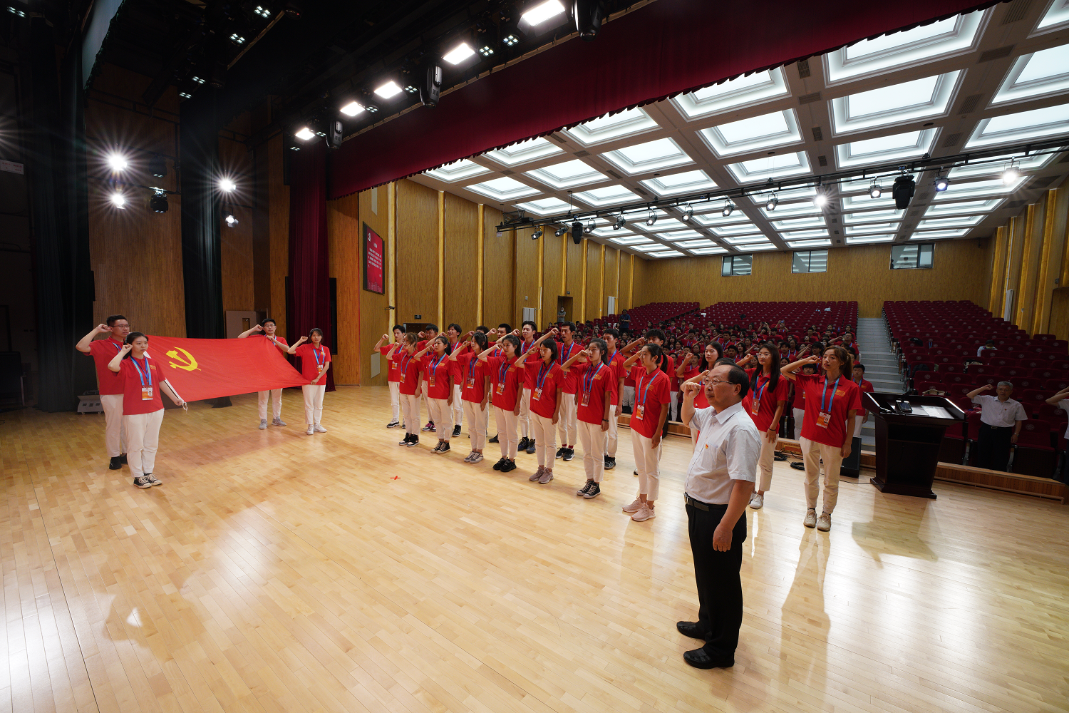 6月28日正式演出前,學校召開正式演出總動員。黨委黃先開書記作動員講話,并帶領合唱團中的新黨員進行集中入黨宣誓、老黨員重溫入黨誓詞。