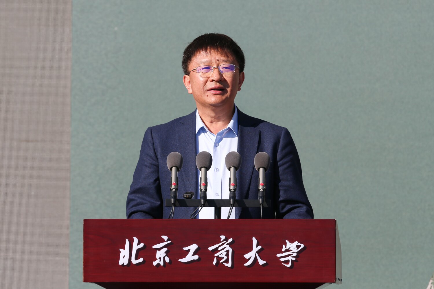 黨委常委、副校長寇紅江宣讀《北京工商大學關于成立2024級學生軍訓旅的決定》。