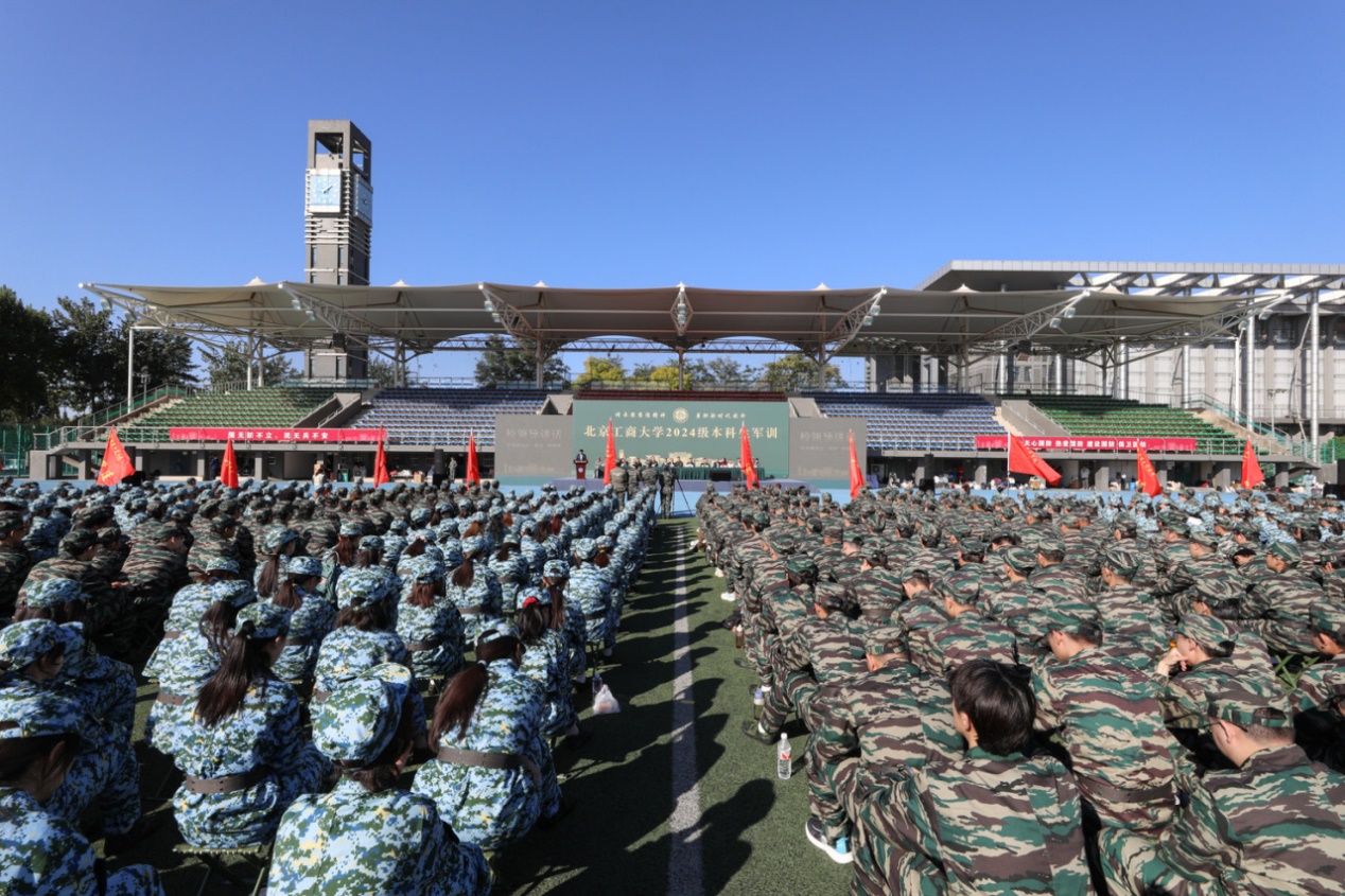 秋高宇闊陽光媚,氣爽空明雁陣悠。10月8日,北京工商大學2024級學生軍訓開訓儀式暨張思德事跡報告會在良鄉主校區舉行。西城區人民武裝部部長劉峙,房山區人民武裝部政委肖勇,承訓部隊中隊長張進,校領導黃先開、郭建華、寇紅江出席儀式。學院及相關職能部門領導、軍訓基地領導、軍訓旅指揮部領導、承訓教官、2024參訓學生參加儀式。開訓儀式由黨委學生工作部部長、學生處處長、武裝部部長兼軍訓旅政委鄭光主持。