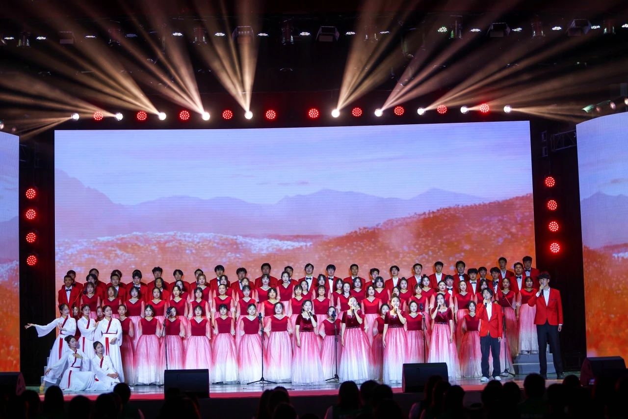 語言與傳播學(xué)院、數(shù)學(xué)與統(tǒng)計學(xué)院演唱的歌曲《前進(jìn)吧中國共產(chǎn)黨》《祖國頌》,歌頌了偉大的中國共產(chǎn)黨和最熱愛的祖國,滿懷著對黨和祖國的深情與祝福。