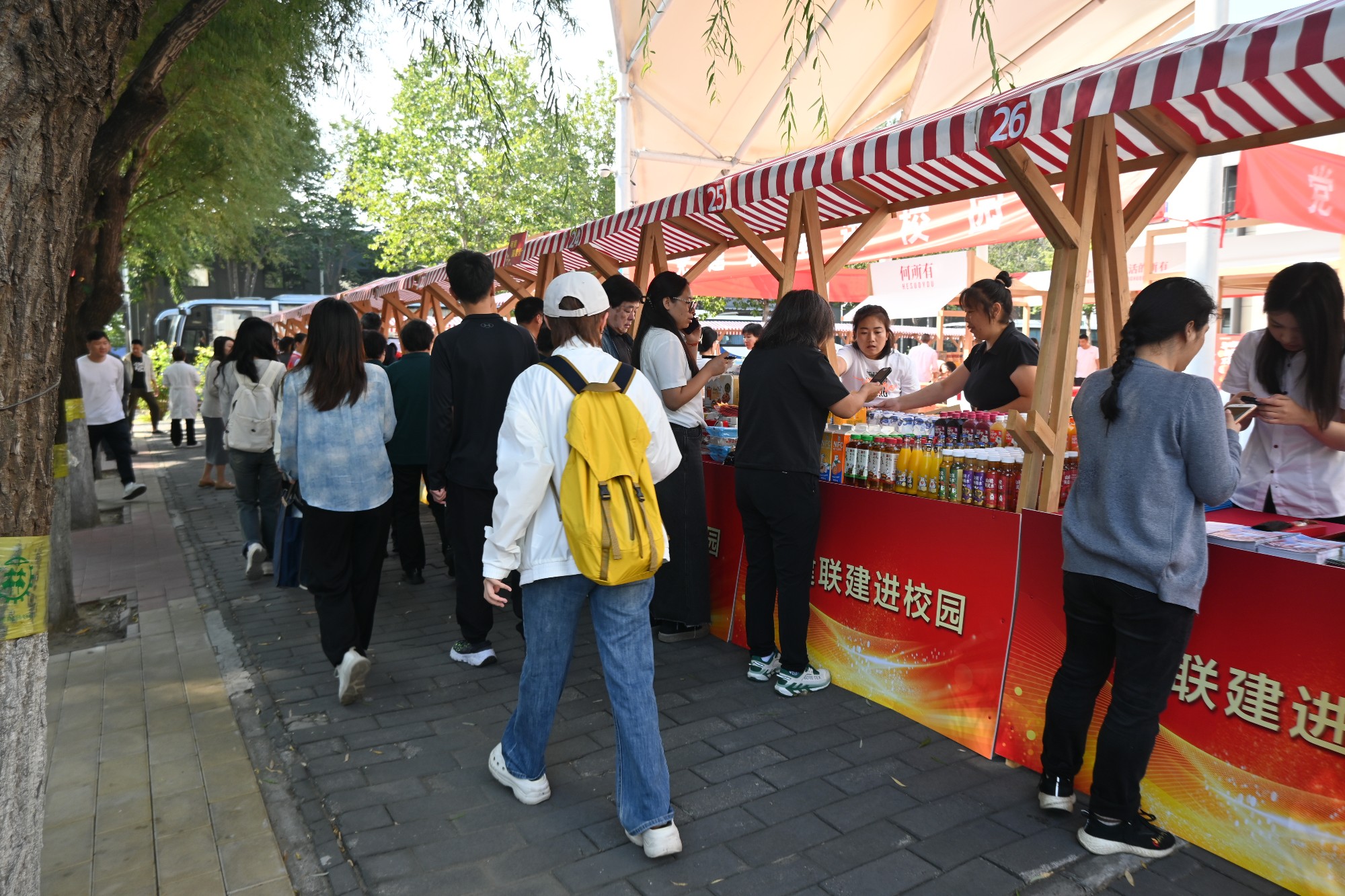 北京北冰洋、一輕食品、同仁堂健康藥業等單位帶來優質產品展示與優惠售賣,涵蓋食品、飲品、健康產品等,讓師生足不出校就能享受聯建單位的優質服務。