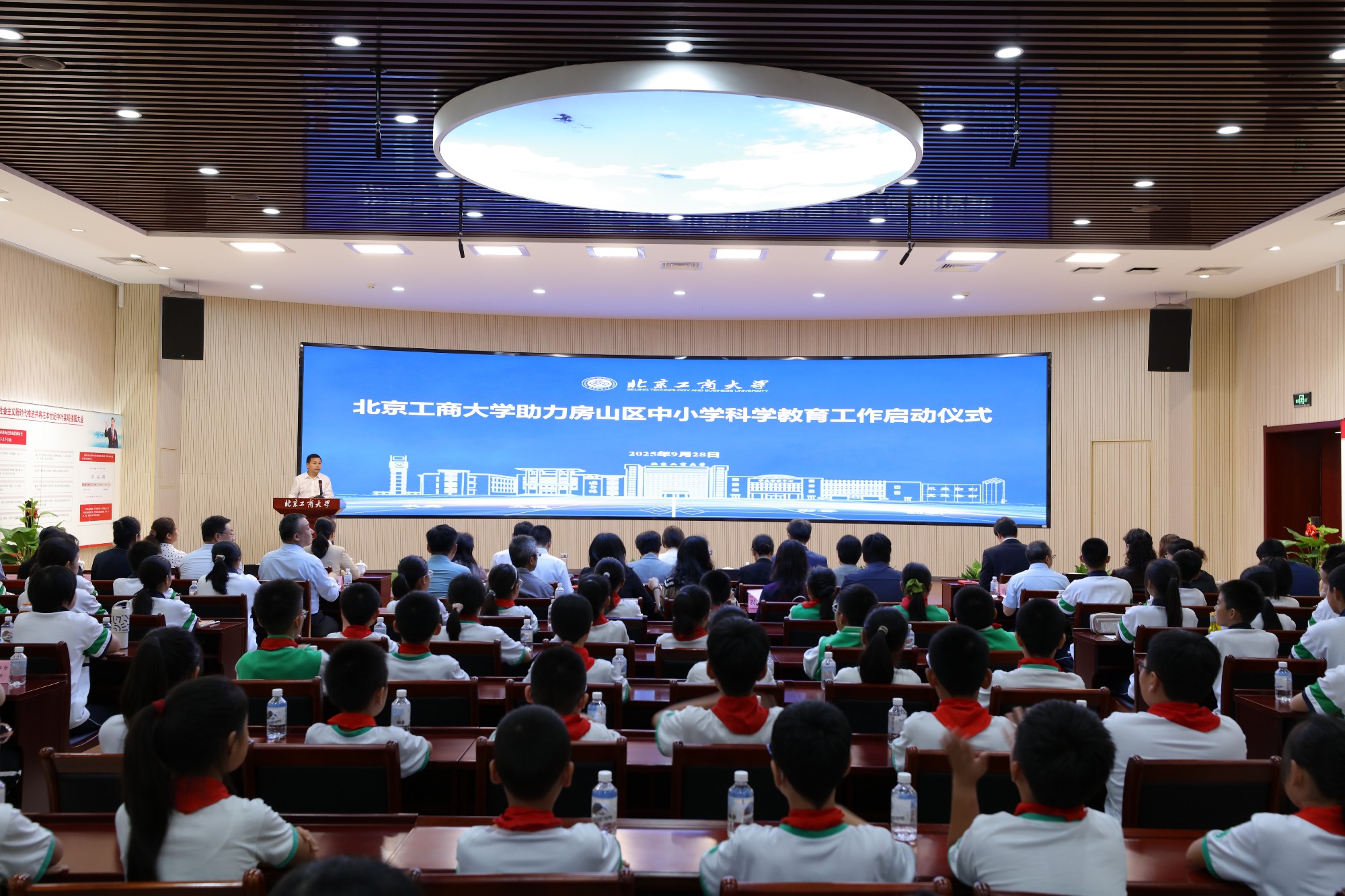 9月28日下午,北京工商大學助力房山區中小學科學教育工作啟動儀式在良鄉主校區舉行。本次活動由北京工商大學、房山區委教育工委、房山區教委聯合主辦,北京市委教育工委、北京市教委指導,是我校主動對接基礎教育需求、以優質資源賦能區域科學教育高質量發展的創新實踐,為構建“校地聯動、資源共享、協同育人”的中小學科學教育新生態按下“啟動鍵”。