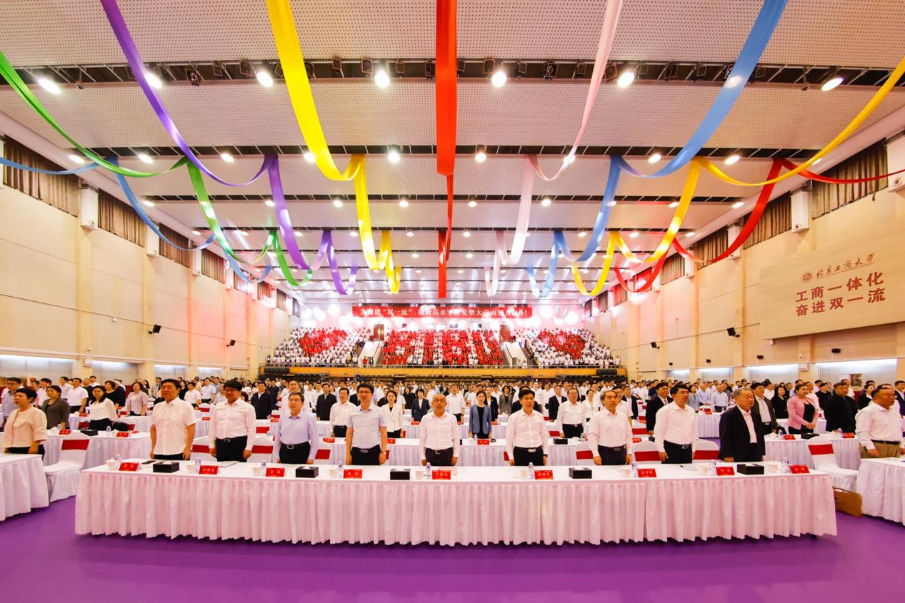 6月15日,北京工商大學(xué)創(chuàng)新發(fā)展大會暨創(chuàng)建“雙一流”學(xué)科高端學(xué)術(shù)大會在良鄉(xiāng)主校區(qū)文體館舉行。大會以 “工商一體化,奮進(jìn)‘雙一流’”為主題,回顧學(xué)校發(fā)展歷程,展示科技創(chuàng)新成果,謀劃“雙一流”學(xué)科藍(lán)圖。