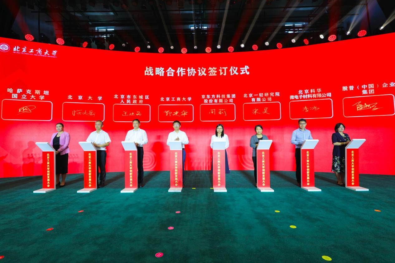 為進(jìn)一步拓寬產(chǎn)教融合與協(xié)同創(chuàng)新發(fā)展路徑,北京工商大學(xué)與哈薩克斯坦國立大學(xué)、北京大學(xué)、北京市東城區(qū)人民政府、京東方科技集團(tuán)股份有限公司、北京一輕研究院有限公司、北京科華微電子材料有限公司、脫普(中國)企業(yè)集團(tuán)等多領(lǐng)域代表,分別簽署戰(zhàn)略合作框架協(xié)議,攜手譜寫新時(shí)代高等教育事業(yè)與經(jīng)濟(jì)社會發(fā)展的嶄新篇章。