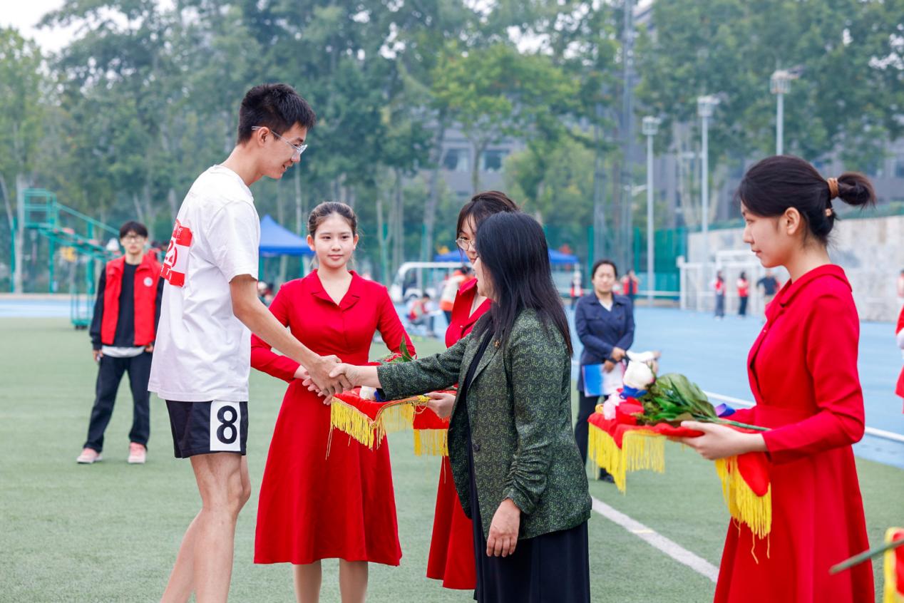 學校黨委常委、副校長徐丹丹宣布運動會開幕并為女子100米決賽鳴槍。