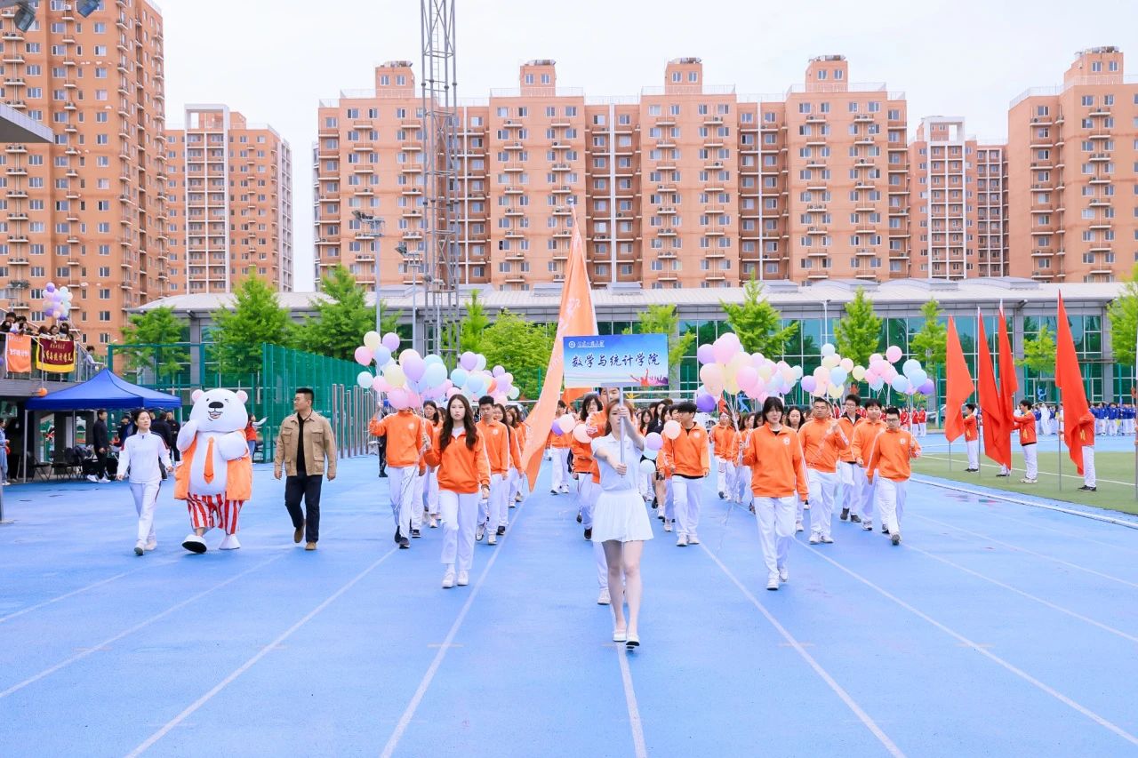 數(shù)學(xué)與統(tǒng)計(jì)學(xué)院方陣步伐穩(wěn)健有力,隨風(fēng)直上的氣球寄托著他們飛揚(yáng)的理想。