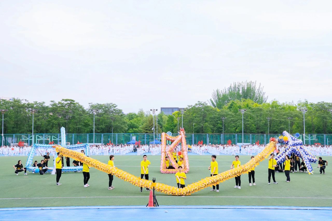 表演開場,龍舞飛揚(yáng)!校舞龍隊(duì)入場。手握游龍,前后照應(yīng),配合默契。隨著音樂節(jié)奏,龍身盤旋舞動,時(shí)而出海,時(shí)而潛淵,聲勢浩大,一舉點(diǎn)燃賽場熱烈的氛圍。