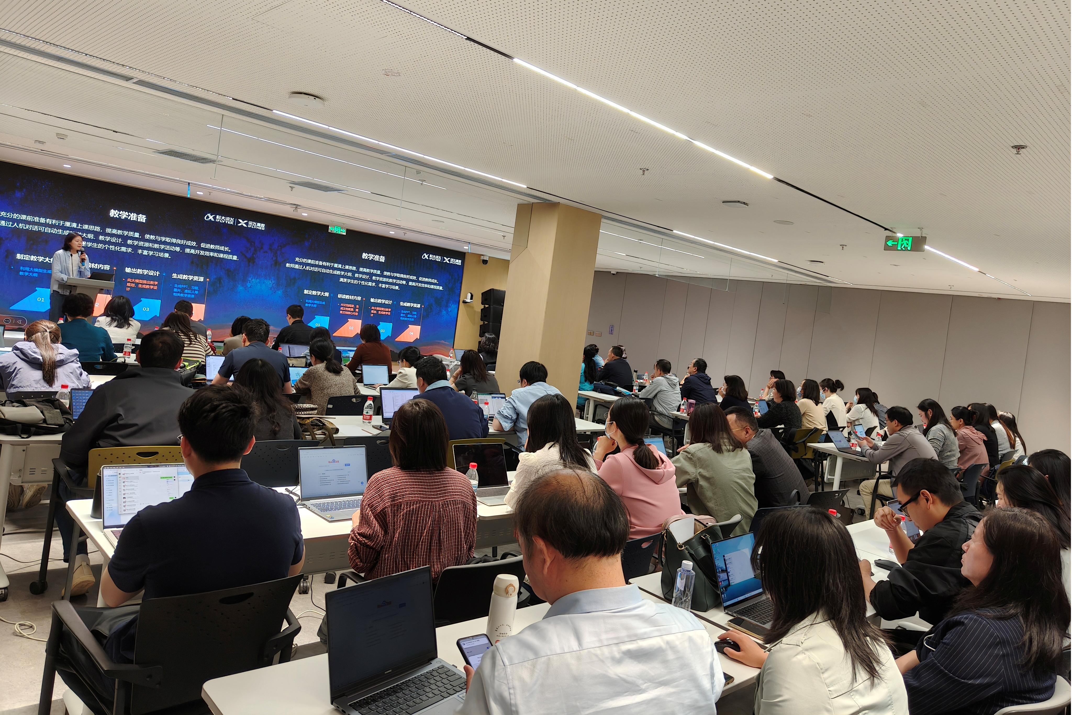 為深入貫徹落實國家教育數(shù)字化戰(zhàn)略行動,推進(jìn)學(xué)校教育發(fā)展規(guī)劃,全面提升教師數(shù)智化教學(xué)能力,5月7日下午,北京工商大學(xué)教務(wù)處與人事處教師發(fā)展中心聯(lián)合舉辦了教育教學(xué)能力提升計劃"智師云梯"主題系列活動第八期——智慧教學(xué)工作坊。本次活動在科大訊飛總部舉行,來自各學(xué)院的骨干教師代表通過參觀學(xué)習(xí)、專題講座和實操演練,深入探索人工智能技術(shù)與教育教學(xué)深度融合的創(chuàng)新路徑。