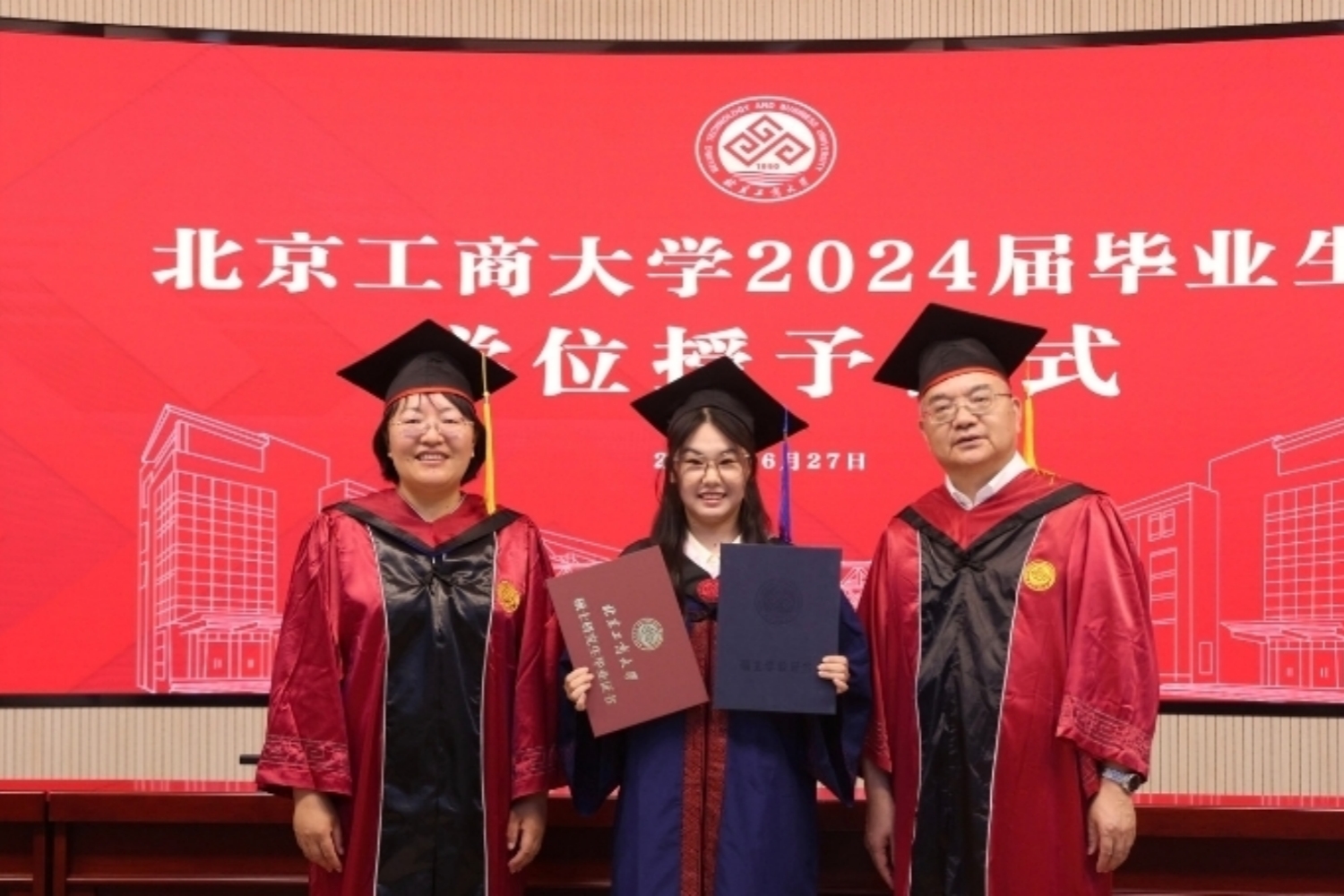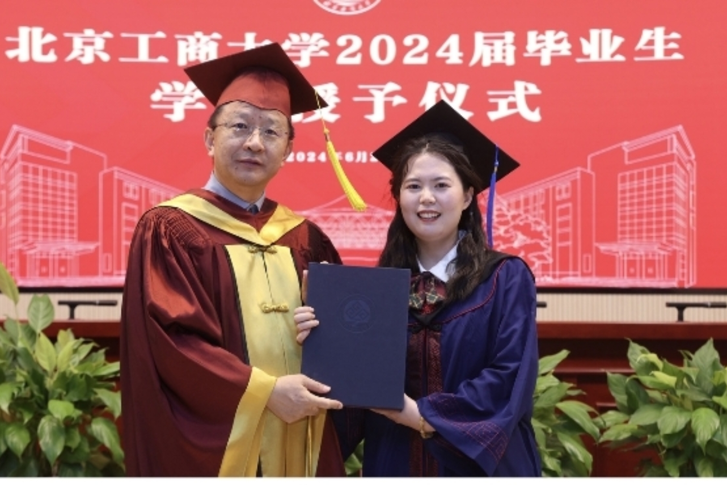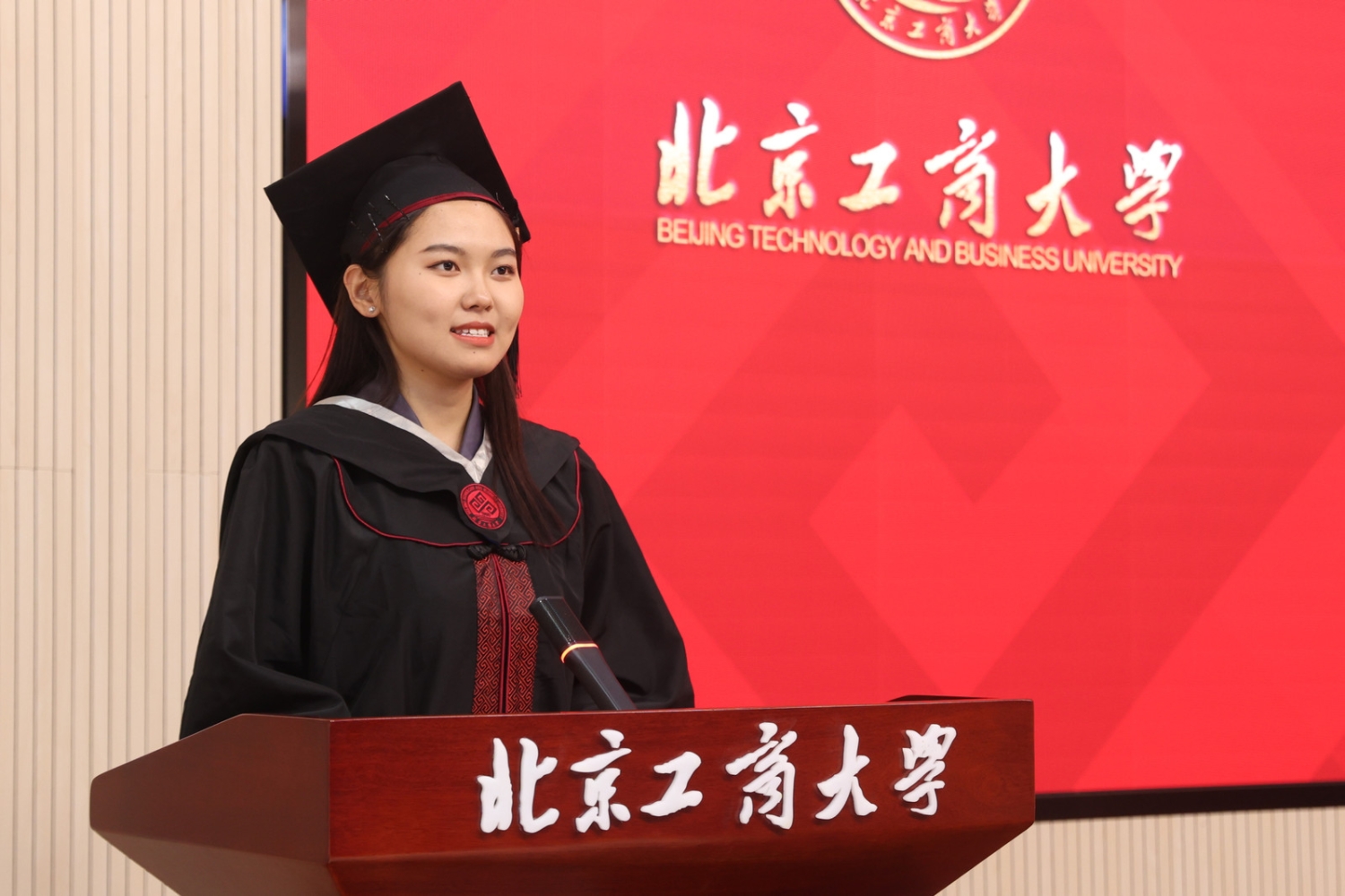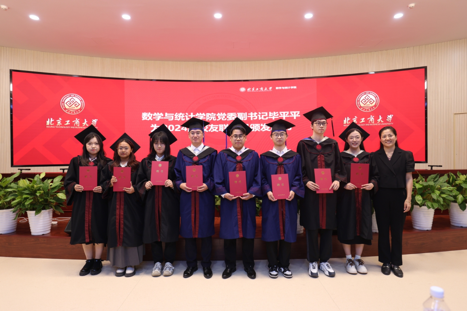 副院長(zhǎng)王康宣讀《北京工商大學(xué)數(shù)學(xué)與統(tǒng)計(jì)學(xué)院關(guān)于表彰2024屆校級(jí)優(yōu)秀畢業(yè)生的決定》, 10人獲“北京工商大學(xué)本科優(yōu)秀畢業(yè)生”榮譽(yù)稱號(hào),6人獲“北京市優(yōu)秀研究生畢業(yè)生”榮譽(yù)稱號(hào)。希望受表彰的同學(xué)秉承“求真、立德、勤奮、創(chuàng)新”的校訓(xùn),珍惜榮譽(yù),發(fā)揚(yáng)成績(jī),堅(jiān)定理想信念,矢志拼搏奮斗,在新的工作崗位上爭(zhēng)取更大的成績(jī)。希望全體學(xué)生向優(yōu)秀畢業(yè)生學(xué)習(xí),站穩(wěn)人民立場(chǎng),練就過(guò)硬本領(lǐng),投身強(qiáng)國(guó)偉業(yè),在實(shí)現(xiàn)中華民族偉大復(fù)興的新長(zhǎng)征路上奮勇搏擊。