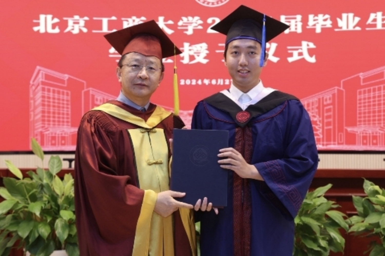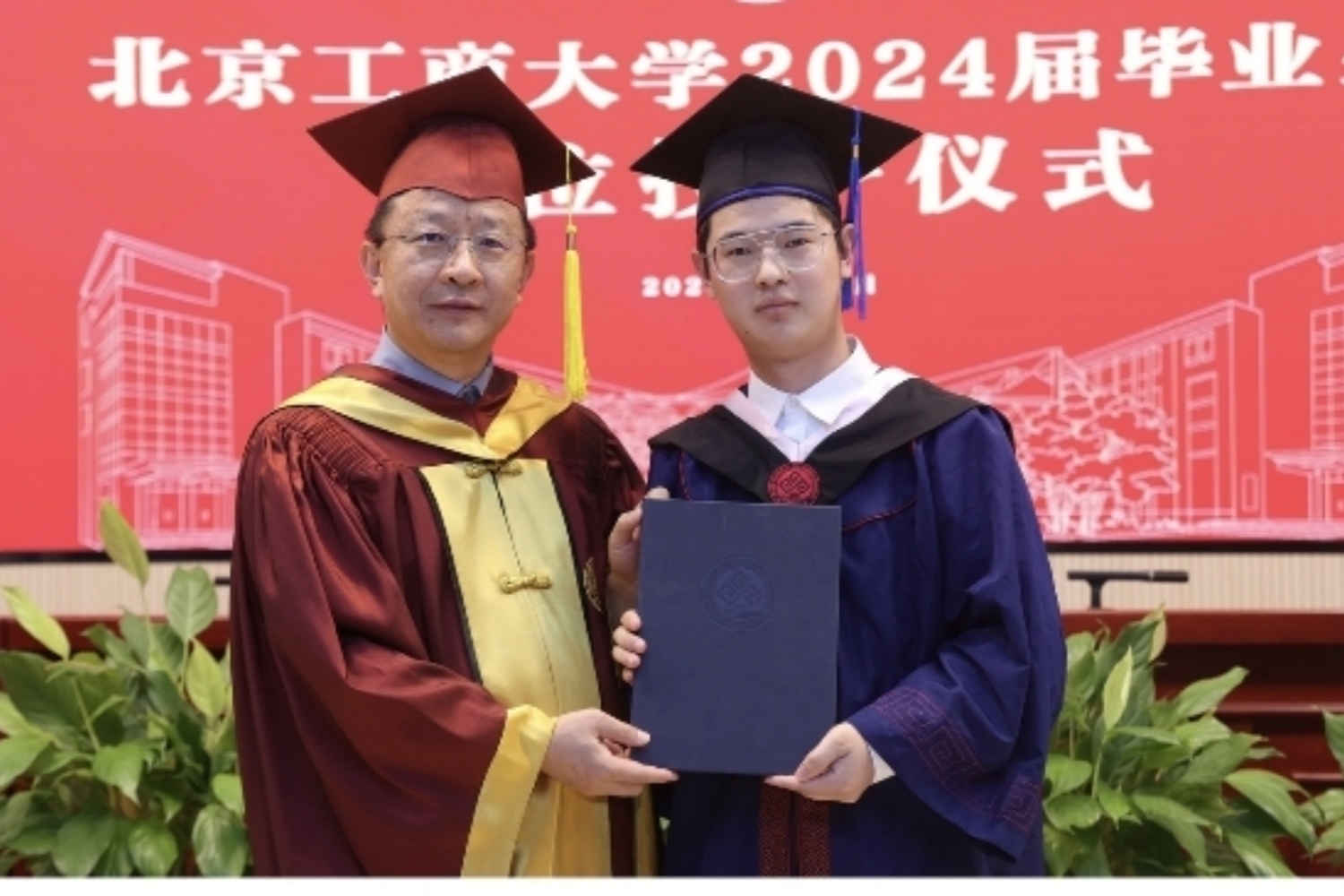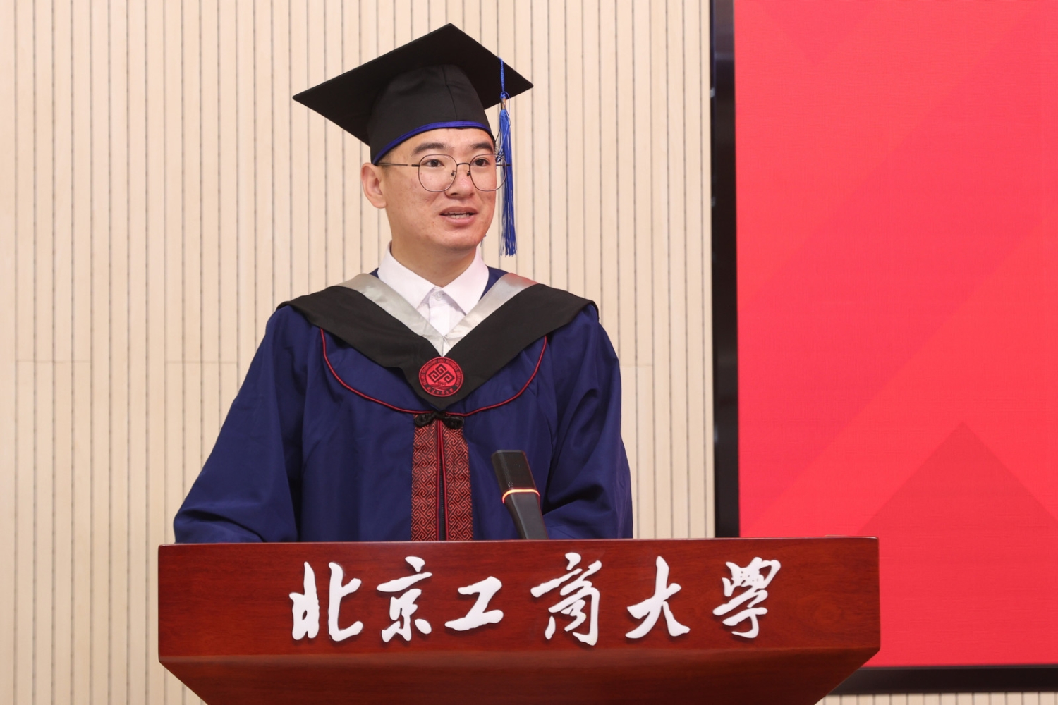 數(shù)統(tǒng)研213萬(wàn)鑫作為碩士畢業(yè)生代表,在畢業(yè)典禮上向母校和在同學(xué)們求知路上指點(diǎn)迷津的老師們表達(dá)最深切的敬意和感激之情。他提到,回顧過(guò)去,與同學(xué)們?cè)诒惫ど坦餐冗^(guò)的寶貴時(shí)光仍歷歷在目。他感激學(xué)校為學(xué)生提供的優(yōu)越學(xué)習(xí)環(huán)境,也感受到學(xué)校對(duì)同學(xué)們的深切關(guān)懷和對(duì)高質(zhì)量服務(wù)的追求。在離別之際,心懷感激與不舍,他衷心祝愿同學(xué)們前路光明璀璨,祈愿母校和學(xué)院蓬勃發(fā)展,再創(chuàng)輝煌。
