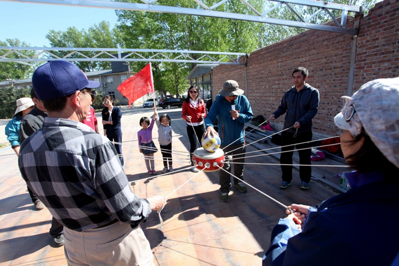 在植樹現(xiàn)場,老師們在基地工作人員的指導(dǎo)下,揮鍬培土,栽下新苗,共同為營造首都的藍天貢獻自己的力量。活動結(jié)束時,大家共植下柏樹50余棵。隨后教師們以小組為單位開展素質(zhì)拓展,在分組后分別確定了隊名、隊旗、隊標、隊歌,開展迎風(fēng)招展、巧解套繩、眾志成城、團隊破冰等素質(zhì)拓展游戲。在豐富的拓展活動中,青年教師配合默契、凝聚合力,通過有效溝通和團隊協(xié)作成功完成各項任務(wù),大家感受到了團隊的力量,體會到團結(jié)協(xié)作的意義。