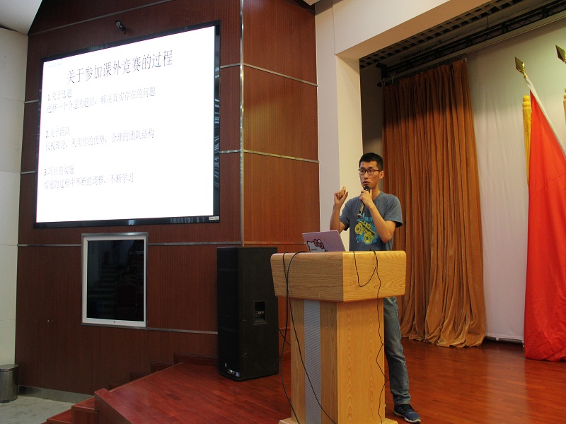 張凱偉在致辭中對學(xué)院過去一年的科創(chuàng)成果給予肯定,希望同學(xué)們更加愛學(xué)習(xí)、愛科技、愛創(chuàng)新,吸收兄弟院校先進經(jīng)驗,積極投身課程學(xué)習(xí)和科技活動。他宣布2016年學(xué)術(shù)創(chuàng)新月暨科技文化節(jié)正式開幕。