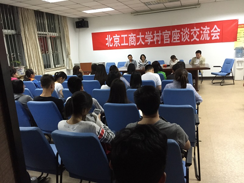 在房山區政府CSD管委會擔任村官的校友馬卓妮和在延慶縣大莊科鄉人民政府擔任村官的校友張歡介紹了自己在村官報名、筆試、面試過程中遇到的問題,鼓勵同學們踴躍報名村官。他們還介紹了目前的工作和生活情況,分享了擔任村官的收獲。他們認為,作為村官要積極主動完成各項工作任務,通過工作得到鍛煉不斷成長。