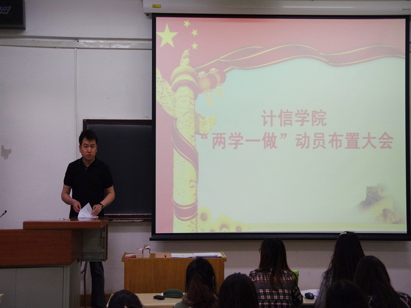 5月4日、12日、17日,計信學院黨委分別于阜成路、良鄉校區召開計信學院教工黨支部、學生黨支部 “兩學一做”學習教育動員部署大會。學院黨委書記陳誼、副書記張凱偉分別向教工黨支部書記、全體學生黨員做動員部署。
