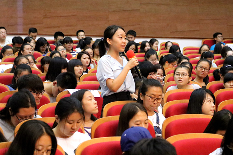 本次報(bào)告會邀請了6名在校生和畢業(yè)校友,他們邁著從容自信的步伐走上講臺,分別講述了自己的成長經(jīng)歷和人生感悟,為商學(xué)院16級學(xué)子答疑解惑,分享經(jīng)驗(yàn)。