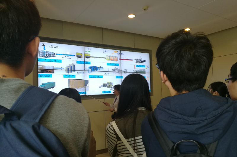 同學們認真參觀、學習了康師傅方便面和飲品的生產車間及展館。康師傅控股有限公司講解員結合產品的歷史和生產為師生展開詳細介紹,將產品從原料、加工、包裝、質檢一系列過程完整展現出來。車間高度機械化和自動化獲得師生的一致贊嘆。同時,通過企業宣傳片,更進一步的將企業的歷史和文化立體地展現出來。