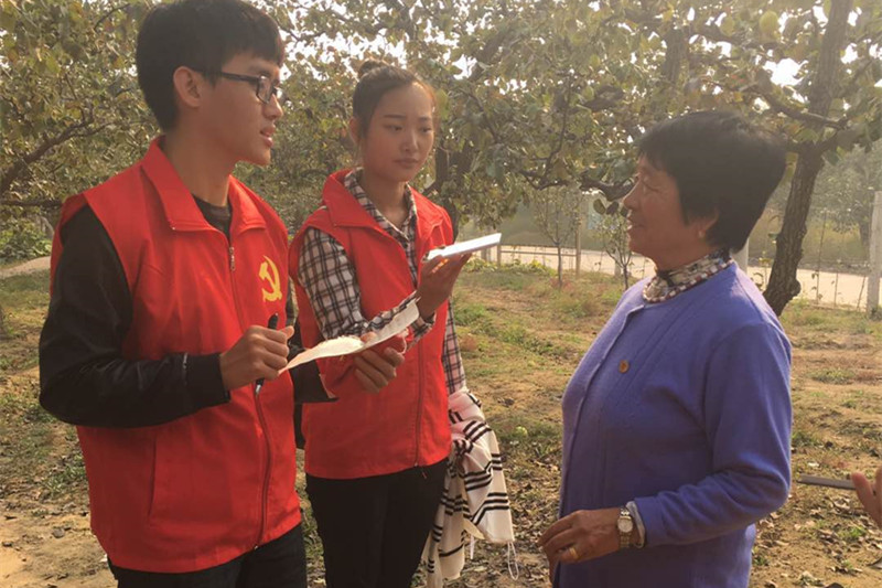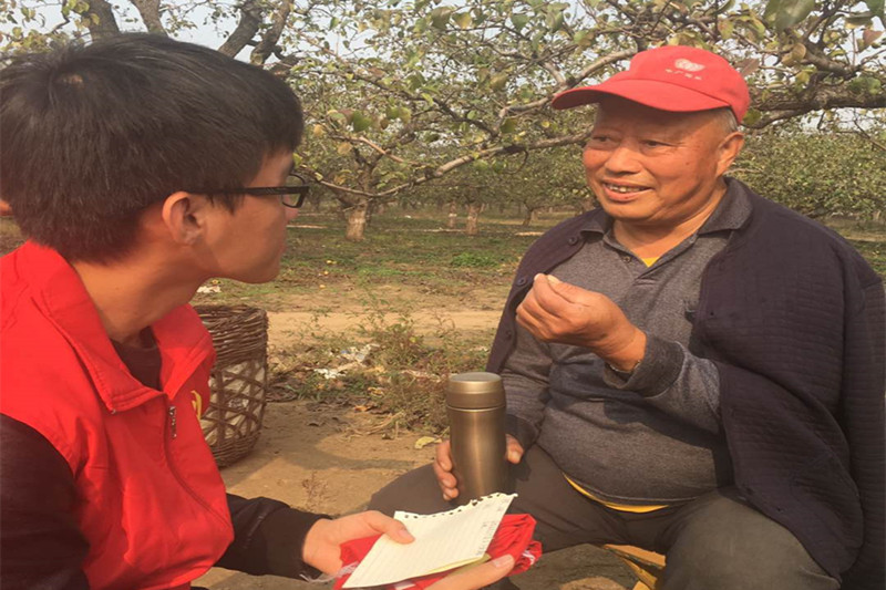 學(xué)生黨員們分成三隊(duì)對賈河村黨支部成員和村民開始深入走訪,同時(shí)開展志愿服務(wù)活動(dòng)。在走訪過程中,學(xué)生黨員深入農(nóng)村領(lǐng)導(dǎo)班子、農(nóng)戶家中和果園,詳細(xì)了解了京白梨的年產(chǎn)量、深加工情況、旅游設(shè)施建設(shè)情況、景區(qū)接待情況等,在順利完成調(diào)研內(nèi)容的同時(shí),也體會(huì)到了親自采摘與大自然親近的樂趣。