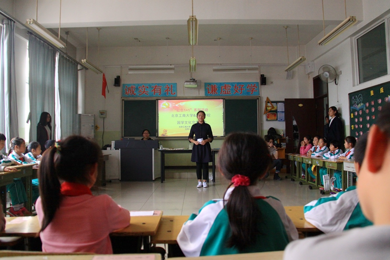 為弘揚中國傳統文化,發揮我院學生黨員專業特色,培養學生黨員的奉獻精神和責任意識,同時豐富昊天學校學生的課余生活,提高中小學生學習中國傳統文化的熱忱,藝術與傳媒學院良鄉校區學生黨支部與昊天學校開展國學主題交流的紅色“1+1”活動。