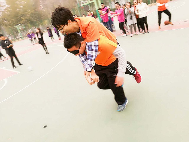 運(yùn)動(dòng)會(huì)設(shè)計(jì)了簡單有趣的六人七足,緊張刺激的背靠背夾籃球,配合默契的“你是我的眼”等眾多項(xiàng)目,吸引了很多學(xué)生參與和觀看。