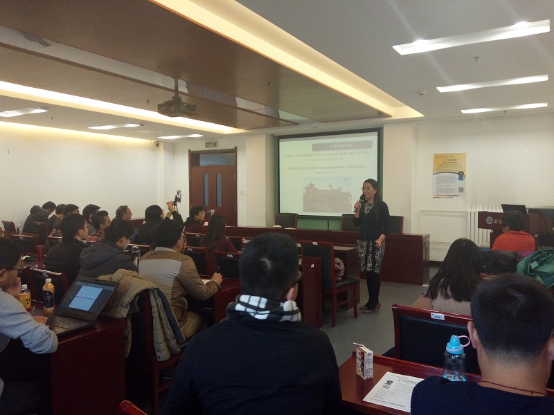 Claudia Zuniga首先由一個“拉繩子”視頻開始,向在場的聽眾形象的解釋了城市之間的聯系。之后她通過與聽眾的一系列互動啟發聽眾對城市計算中的數據與可視化挑戰的思考:發展中國家,比如我們身處的中國,正處在城市化進程的重要階段,許多城市化帶來的問題諸如資源消耗、交通擁堵等都擺在我們面前,如何通過數據分析與可視化解決這些問題。隨后講座重點介紹了Claudia Zuniga和她的團隊在哥倫比亞所進行的多個智能城市的研究項目,包括了項目的研究背景,參與研究的人群,數據收集與數據分析的情況等等。同時還分析了在這幾個項目中所遇到的數據分析與可視化的挑戰和解決方式。