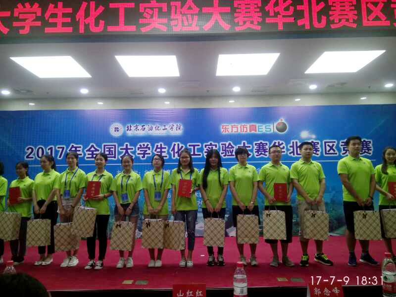 7月9日下午,由北京市教育委員會、天津市教育委員會、山東省教育廳、河北省教育廳、內蒙古教育廳主辦,北京石油化工學院、中國石油大學(北京)承辦的“2017年全國大學生化工實驗競賽華北賽區競賽”落下帷幕。此次競賽包括清華大學、天津大學、北京理工大學、北京化工大學在內的35所高校的105名學生參加。