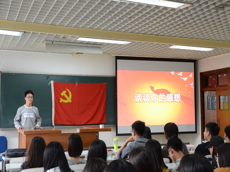 首先,由八支部書記鄒天舒同志為大家講述即將召開的十九大會議的簡要背景及其重要性。中國共產黨自建立以來走過了風風雨雨,我們在實踐中開辟了適合自己國情的新道路,即將迎來十九大,我們更應該堅定我們的信念,在艱苦奮斗中磨練自己,緊跟共產黨的腳步不動搖。